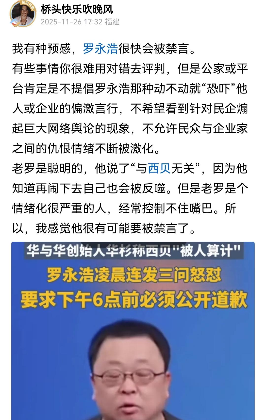 “总部关心的是局面,不是谁死谁活” 我以前说罗永浩可能会被封号,被罗永浩的粉丝和