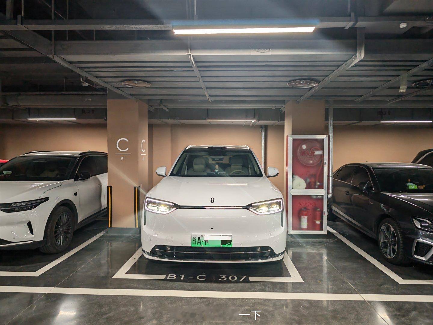 商场里这种车位是真的不错,不用担心左右开门杀,虽然下车有点挤,但是问界M7有离车泊入就很轻松了