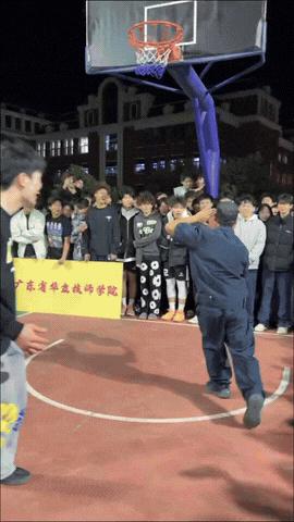 “37岁保安大哥火到人民日报了!”广东江门一学校,男生正在篮球场上打篮球,一个保