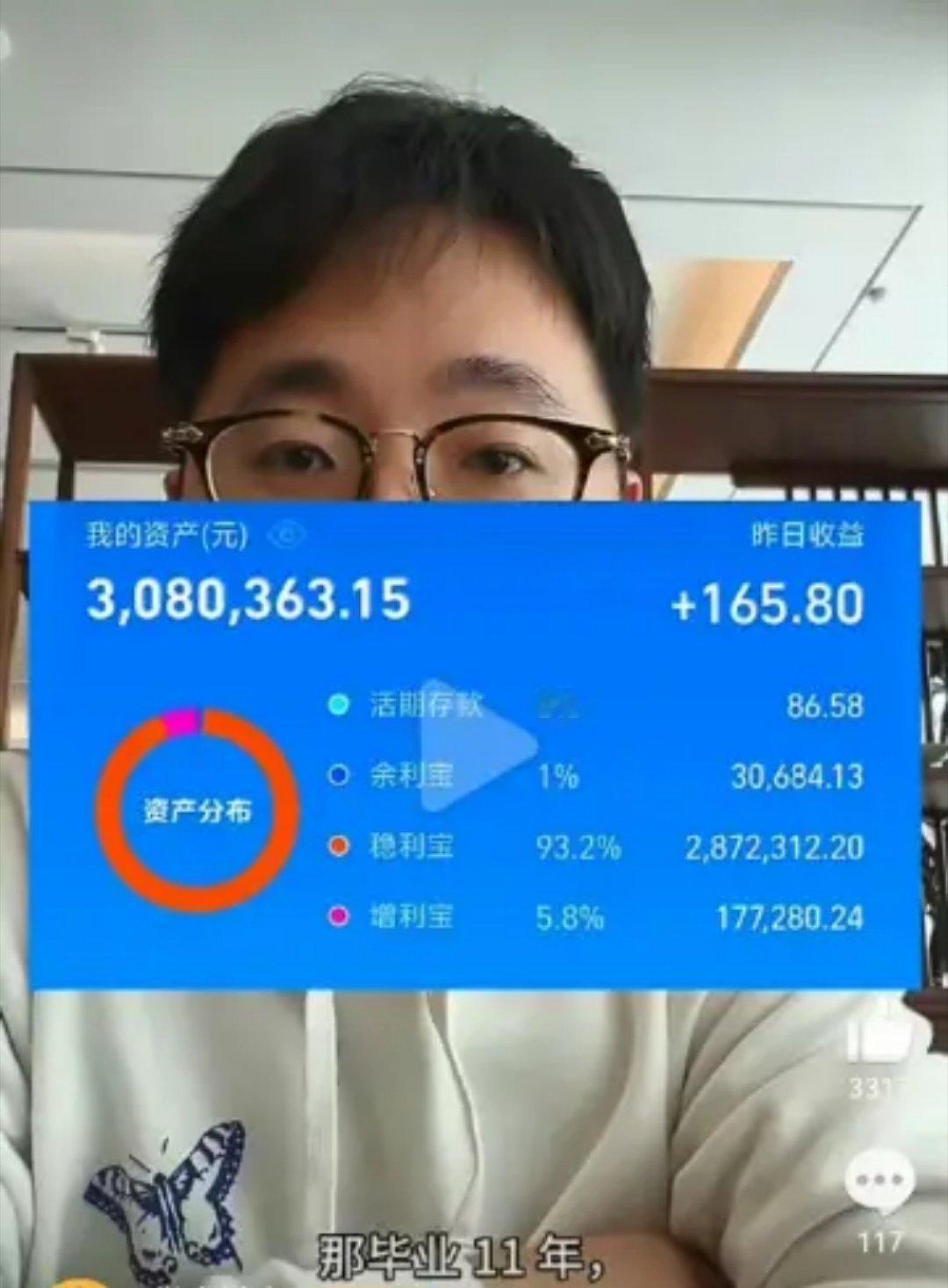 毕业11年存350万的5个消费习惯大家就说他每个月得存多少?看他这个资产配比,年收益率并不高,所以真的要达到这个350万的目标,每个月至少得存2.5万,除去收益,每月也至少存2万。那么就说,他每月的收入至少在2万以上。毕业11年存350万的5个消费习惯