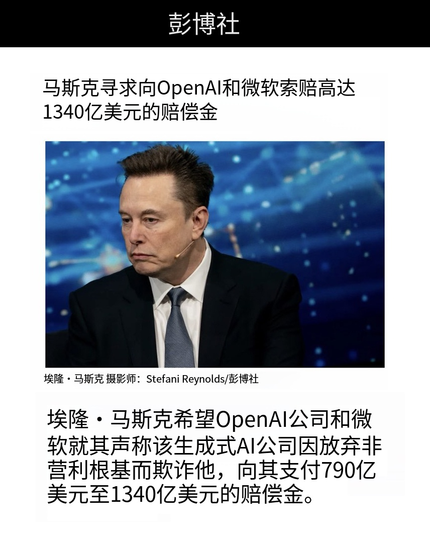 据彭博社报道,埃隆·马斯克向OpenAI和微软索赔790亿至1340亿美元,声称该公司放弃非营利性质并与微软合作,欺骗了他。网上赌场认为马斯克赢的概率高达67%。~~~~~~~~~~马斯克确实在 2024 年对 OpenAI(及 CEO 萨姆・奥特曼、微软)提起诉讼,指控其违背了 “非营利、AI 造福全人类” 的创始使命,转向商业利益。2026 年 1 月,美国加州联邦法官伊冯娜・冈萨雷斯・罗杰斯正式裁定,驳回 OpenAI 和微软要求撤销诉讼的请求,案件将进入陪审团审理阶段。马斯克打赢了官司能要到那么多钱吗?