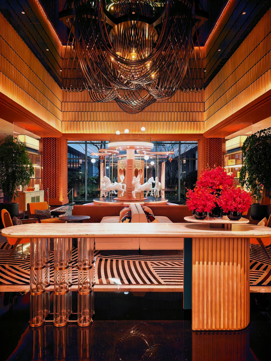 夜晚的鸭嘴鱼小火锅,搭配联名的啤酒,让这家酒店的“妙趣横生”落在了味觉上。在乐园旁、在郊外,一顿热气腾腾的小火锅,深感这家酒店还挺会。