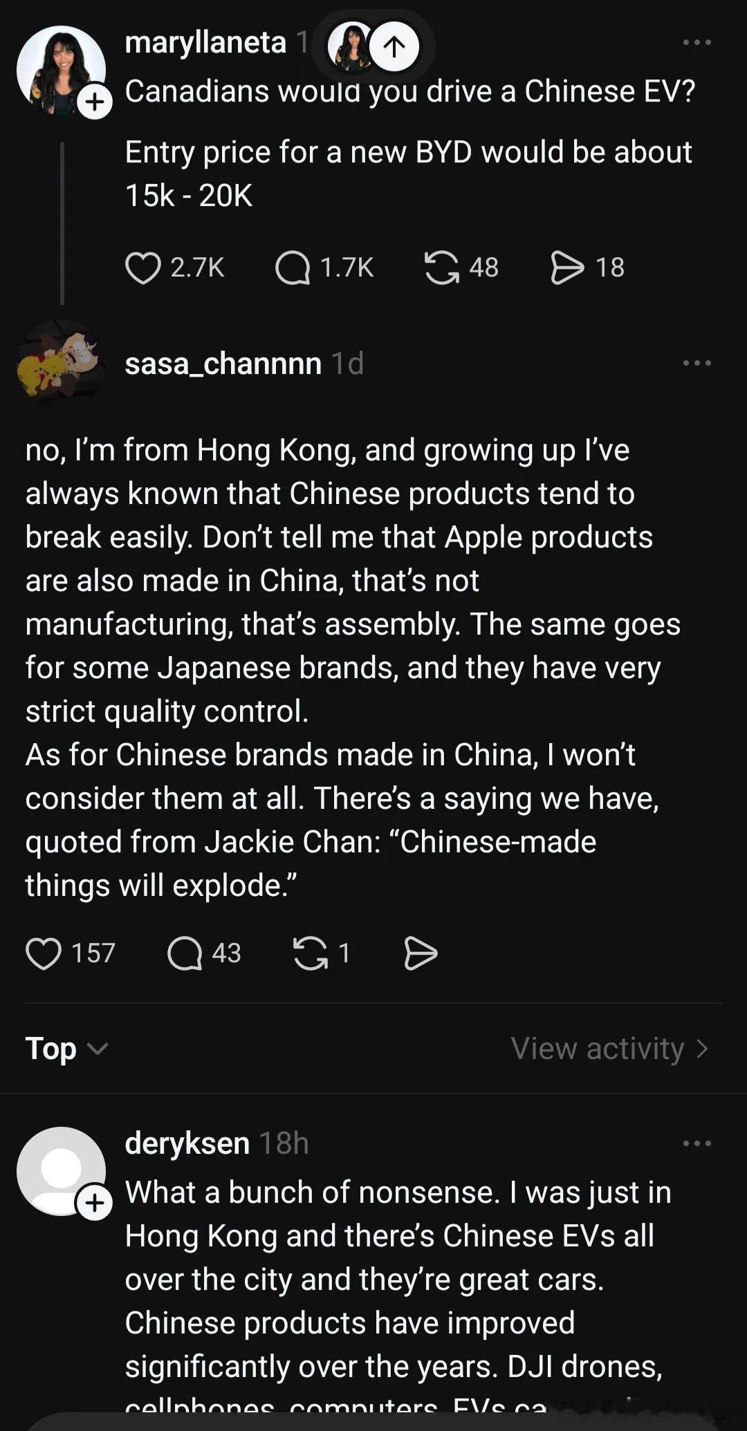 绿蛙、蟑螂、北美高华,看到加拿大人想买中国新能源汽车后,玻璃心碎一地🤣这帮玩意跑到加拿大人的评论区用英文诋毁中国新能源汽车,结果反被加拿大人教育🤣🤣