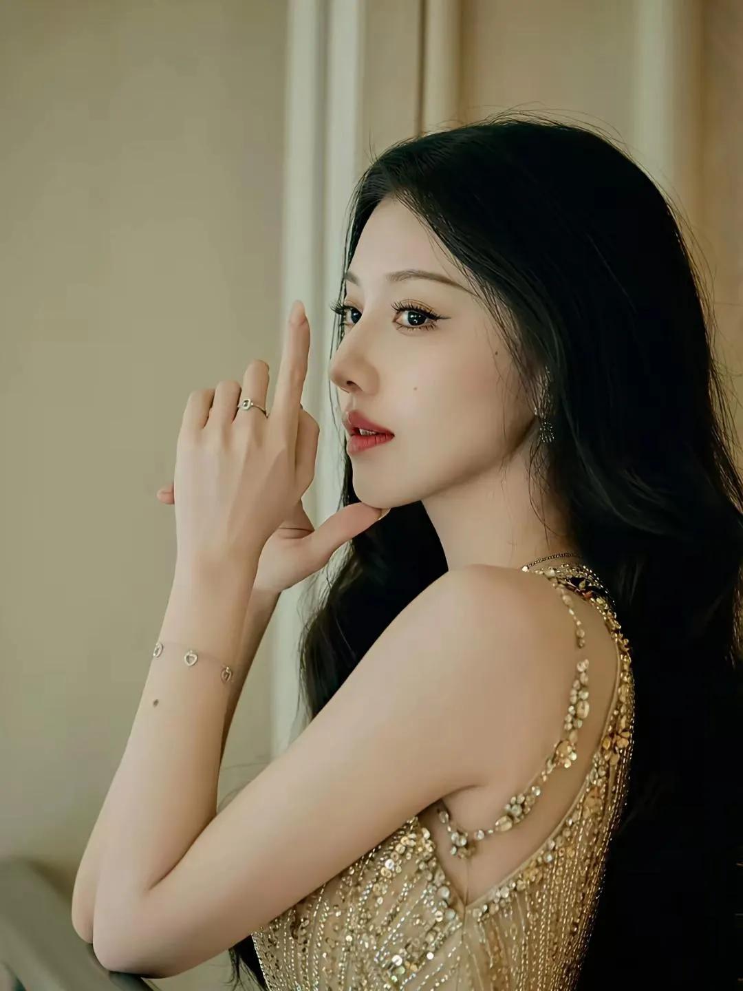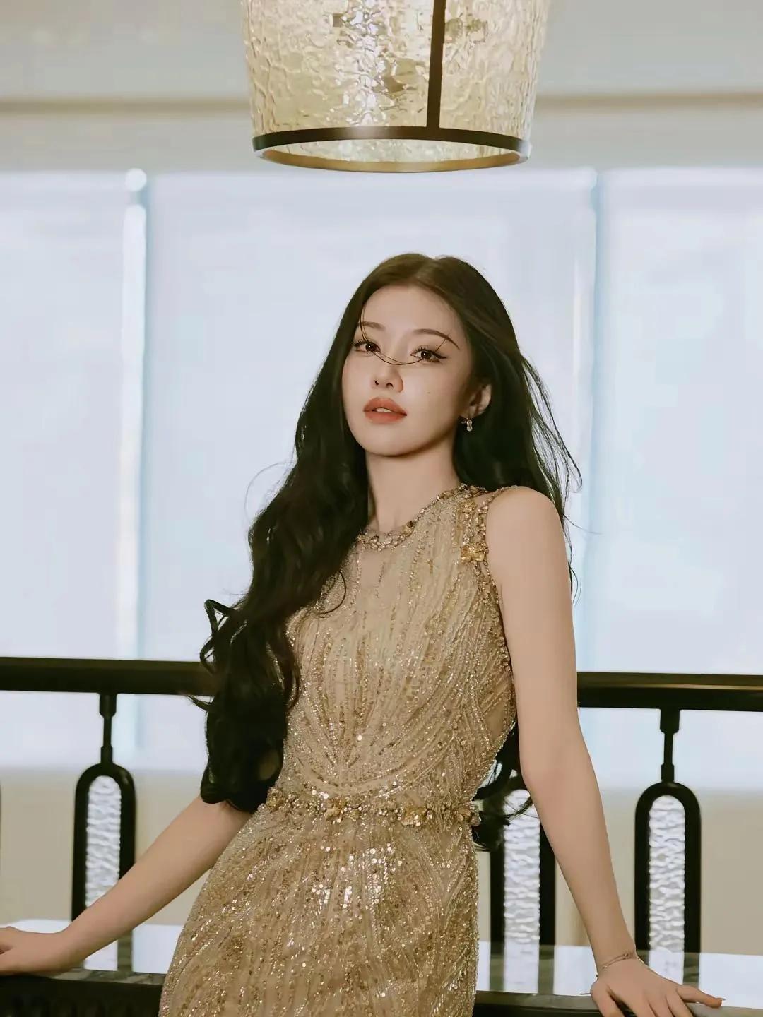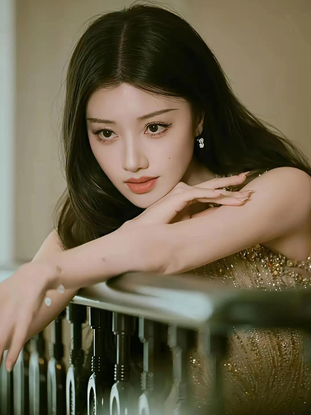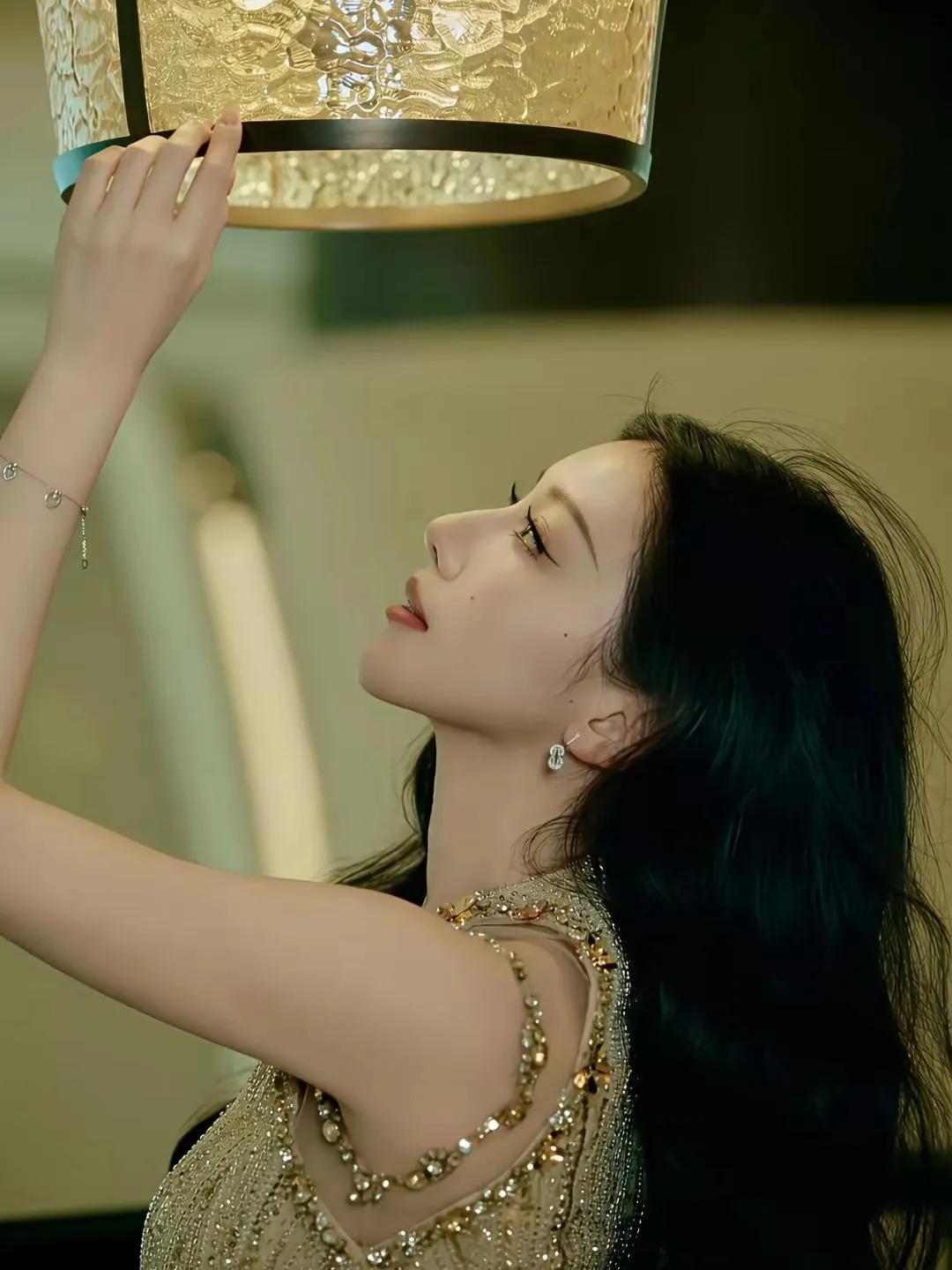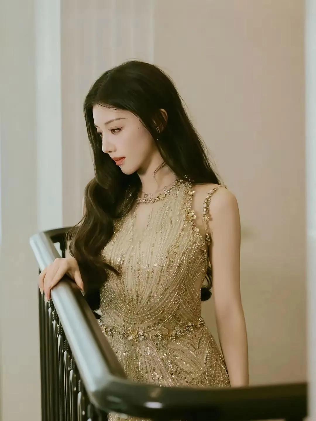 王鹤润这组鎏金挂脖裙写真,把“复古名伶”的氛围感焊在了身上✨ 一袭鎏金挂脖长裙缀满细闪钉珠,在柔和光线里泛着细腻光泽,勾勒出曼妙身姿。她倚靠在楼梯扶手上,微垂眼眸,长发如瀑散落肩头,清冷又温柔的气质仿佛自带柔光滤镜,宛如从复古画报中走出的优雅名伶,每一帧都美到让人窒息!