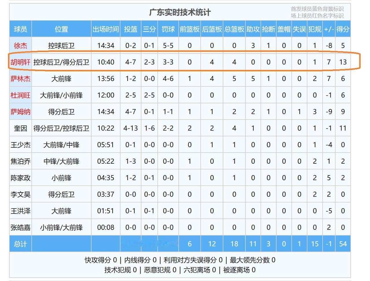 千年等一回,胡明轩的状态终于回升了! 中国男篮顶级后卫,广东队当家球星胡明轩,CBA新赛季对他来讲,可以说是有苦难言,因为,他长时间都是十分低迷,表现十分糟糕!特别是在进攻端,完全找不到北。12中2,11中3,10中3,9中2,8中2……场均不足三成的投篮命中率,一直都伴随着他! 由于胡明轩在比赛中一次又一次打铁,因此,有球迷也是给他送上了一个新的外号——“胡铁”!显然,胡明轩现在的状态,已经可以比肩山东队的高诗岩!“高铁”在比赛中,同样也是不断打铁,他投篮不是打铁,就是在打铁的过程中。 毫无疑问,作为CBA总决赛MVP,作为中国男篮主力球员,胡明轩的表现让人大跌眼镜。那么,胡明轩的状态,什么时候能够恢复呢?可以说,所有广东队球迷都想知道,毕竟,这个时间太漫长了。 值得庆幸的是,广东队与北控队的比赛,胡明轩的状态回来了!在上半场比赛,胡明轩成为了广东队主要进攻点,只见胡明轩一次又一次冲到篮下得分,同时, 也是频频投进三分球,半场结束,胡明轩投篮7中4,其中,三分球3投2中,罚球3中3,砍下了13分4篮板的数据。投篮命中率,三分球命中率,都超过了五成,这对于胡明轩来讲,可以说是千年等一回了!真的是不容易呀。 当然了,双方比赛还没有结束,假如胡明轩能够保持这样的状态,那么,他本场比赛得分超过20分,也是很正常的事情。 实话实说:看到胡明轩状态回升,真的是替他感到高兴,太不容易了!太不容易了!特别上一场比赛,广东队输给了上海队40分,胡明轩12投2中,三分球9投1中,遭到了全网的批评。好在胡明轩挺了过来,没有受到影响,用一场出色的表现来回应大家的质疑。 在此,也是希望胡明轩能够将这状态保持下去!别昙花一现!加油吧,少年!