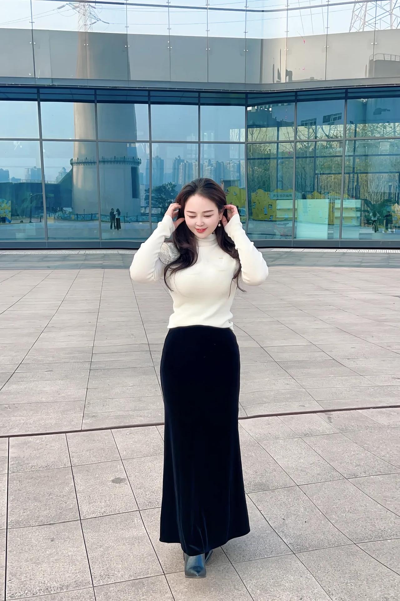 优雅穿搭指南:白色毛衣+黑色长裙,简约而不失时尚!