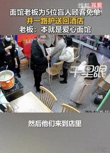 泪目!江苏,5个盲人手拉手进了一家面馆,老板看到后,第一时间就打算给他们免单,但之后想了想,还是收了款,等5个盲人在吃面时,老板偷偷用收银机操作给对方退了款。网友:这样的老板想不发财都难!傍晚5点,位于南京的这家面馆此刻正迎来一天中生意最红火的饭点高峰。伴随着门口风铃清脆的响声,五个人彼此搭着肩膀,排成一列走了进来。走在最前方的男子手中紧握着盲杖,在地面上有节奏地一下下敲击,以此来探知前方的路况。店主老李正端着热气腾腾的面条从后厨走出,一眼便洞察了他们的不便——那茫然空洞的眼神、小心谨慎的步伐,以及外套袖口处因长期摸索而磨得发白的痕迹。老李心头一酸,下意识地就想冲口而出喊道"这顿我请了"。他猛然想起了去年的一段经历:一位盲人顾客曾态度坚决地拒绝了他的免单好意,并掷地有声地说道"我们有手有脚能挣钱,不需要施舍"。那句充满自尊的话语,老李至今仍铭记在心,时刻不敢遗忘。点餐时其中一位戴着眼镜的盲人侧过头,轻声询问道:"老板,最便宜的面多少钱?"五个人凑在一起低声商量了一番后,最终决定每人只点一碗实惠的阳春面,再额外加两份小菜大家分着吃。到了结账环节,领头的男子从随身的布袋里摸索出一叠折叠得整整齐齐的现金,一张张仔细数过之后递了过来。老李双手接过钱,故意提高了嗓门,大声报出金额:"刚好,不多不少"。随即,他转身走向收银台。但他并没有按下那个常规的"确认收款"键,而是手指一滑点了"退款"。紧接着,他趁人不备,将那些现金悄无声息地塞回了盲人的布袋旁,并顺手拿起一个碗垫压住,防止钱被风吹走。这一切"暗箱操作",那几位盲人全程毫无察觉。此刻,他们正摸索着给同伴夹菜,压低声音开心地闲聊着:"这家面汤真鲜,比食堂好吃多了。"另一人也附和道:"下次发工资还来吃。"从这只言片语的对话中可以推断,这五人应该是同一家按摩店的技师,趁着今天轮休,才特意相约出来改善一下伙食。看着他们脸上洋溢着那种淳朴而满足的笑容,显然完全没有意识到,这份令他们感到"心安理得"的消费,其实是老板悄悄送上的一份温情。旁边的食客们将这一幕尽收眼底,却极有默契地没人拿出手机猎奇拍照,大家只是不约而同地放慢了吃饭的速度,默默守护这份宁静。正是这个"先收后退"的微小细节,恰恰精准地戳中了无数人心底最柔软的地方。有网友一针见血地评论说:"直接免单是施舍,偷偷退款是尊重。"还有视障网友现身说法,留言道:"我们最怕的不是付不起钱,是别人异样的眼光和刻意的关照。"数据揭示了更为残酷的现实——中国约有1700万盲人,这个数字几乎相当于整个荷兰的人口总数。虽然在上海等一线城市,盲人保健按摩人员的培训人数已超过12万,就业率极高,但在更广阔的范围内,出行难、被特殊对待仍是常态。目前全国范围内现役的专业导盲犬仅有区区200只。绝大多数盲人的日常出行,只能依靠手中的盲杖和同伴间的互助。像这样五人结伴外出吃面的场景,背后究竟隐藏着多少不为人知的谨慎与艰难?老李那看似"多此一举"的退款行为,不仅是善意的流露,更是对法律精神最生动的践行。五位盲人吃饱喝足,互相搀扶着起身离开,临走时还不忘喊道"谢谢老板,下次再来"。他们或许永远都不会知晓餐费已经被悄悄退回,但那份被当成普通顾客接待的踏实感,将会成为他们生活中最温暖的底色。评论区里,有网友动情地写道:"这才是真正的善良,不动声色却暖到骨子里。"还有人直言:"尊重比施舍更珍贵,这样的老板活该发财。"真正高级的善意,从来不是让受助者背负沉重的人情债,而是让他们在接受帮助的同时,依然能够挺直腰杆做人。当我们能够放下心中的优越感,用平等的眼光去注视每一个人,这个世界才会变得更加温柔。老李的面馆虽然不大,装修也显简单,却因为这份不张扬的善意,成为了这座城市中最温暖的角落。
