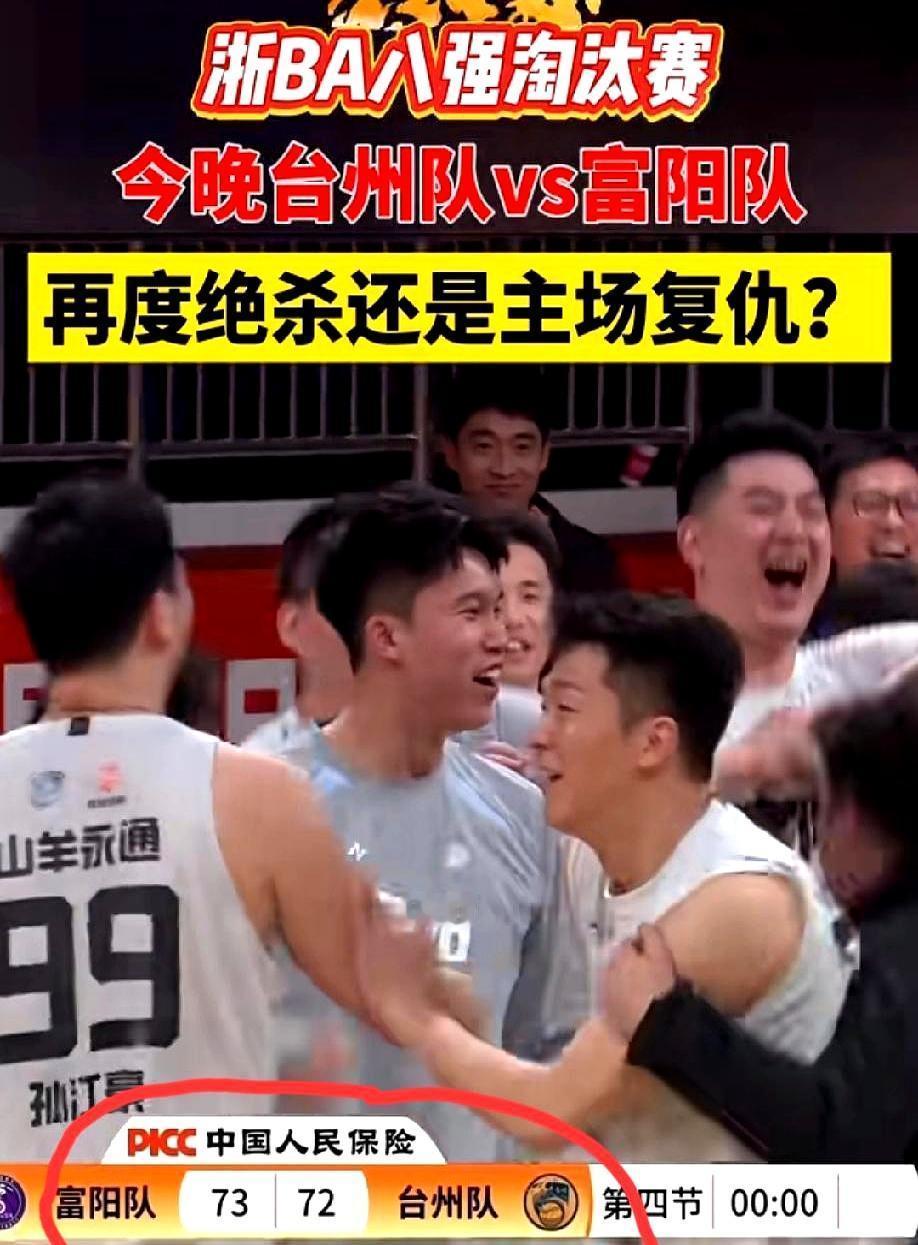 今晚七点,台州主场打富阳,就是“复仇”二字。 首轮73比72,富阳靠夏森最后一球把台州摁在地上。台州最后7秒发不出球,领先9分被翻盘,脸都丢光。 说白了,台州三分再准,篮板输12个,末节一慌就完。富阳一个县队,靠抢板、贴身、反击,把市级队干碎,够硬。 今晚想翻盘?台州先把篮板当命,再别让后卫玩火。富阳继续凶,但客场哨子不一定惯着。 谁赢谁进四强,输的直接回家。干就完了。