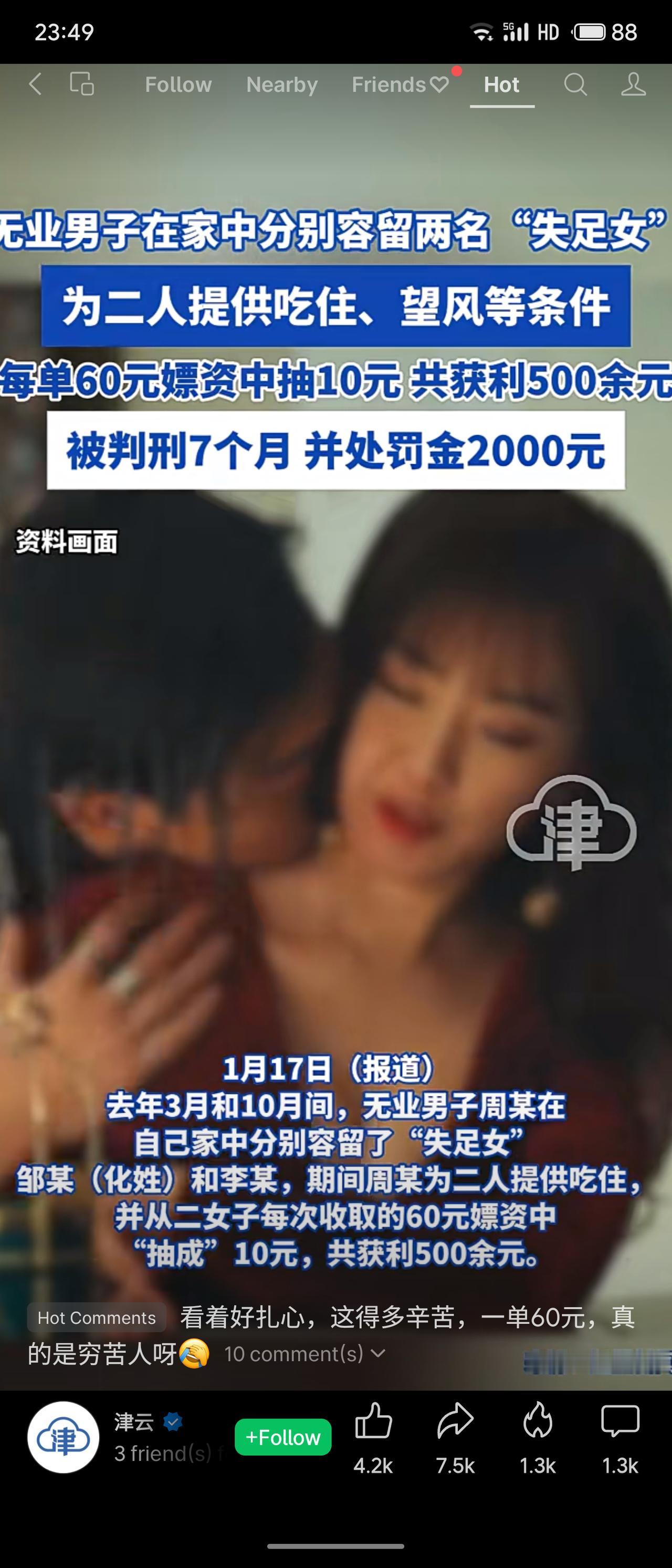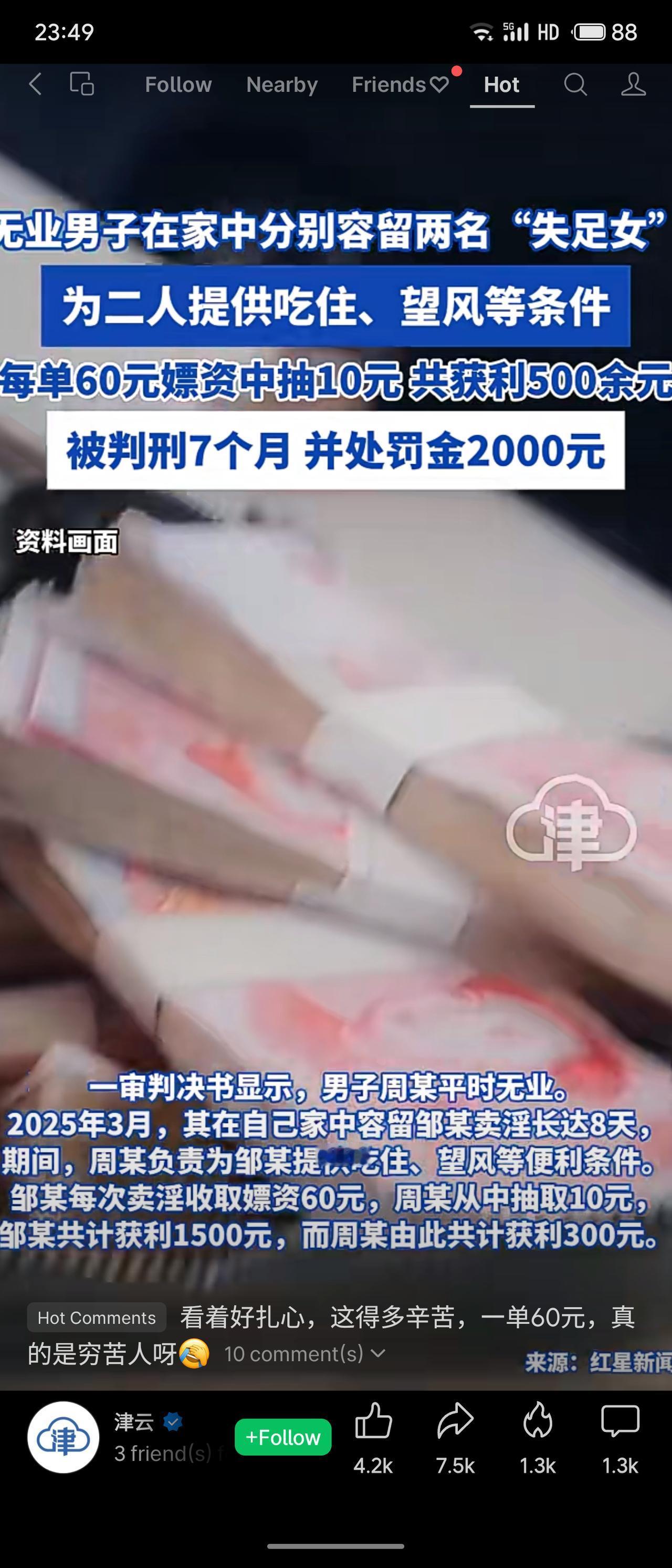 无业男子周某于2025年在家中容留两名女性卖淫,提供食宿并望风,每次从60元嫖资中抽成10元,共获利500余元。法院以容留卖淫罪判处其有期徒刑7个月,并处罚金2000元。案件反映出底层生计的艰难与违法代价。