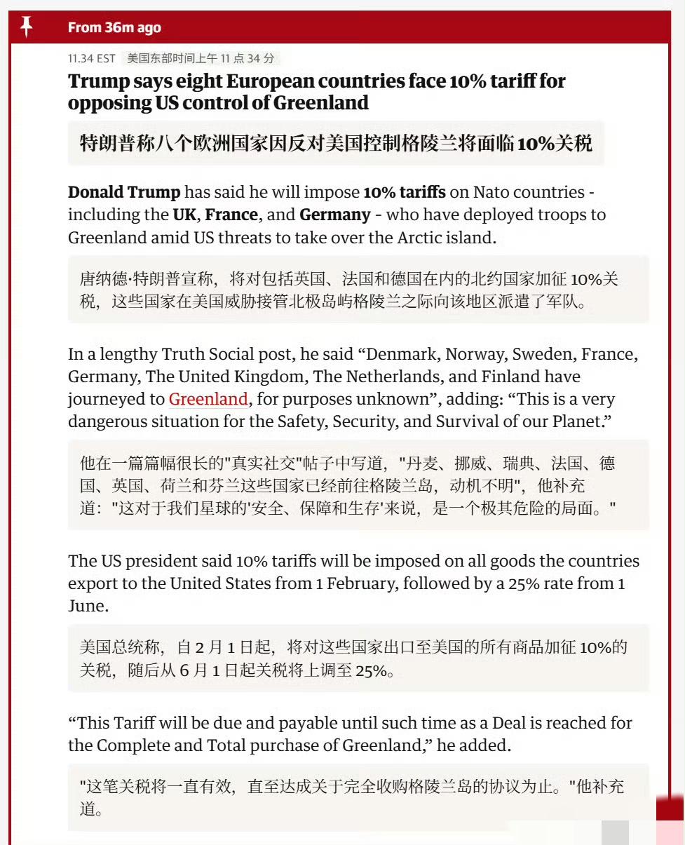美国分析师: 在特朗普手里,关税成了万能骨架钥匙,专门用来撬开所有难题。总统已经或扬言要祭出关税,只为达成以下宏愿: - 逼丹麦卖掉格陵兰 - 让墨西哥和加拿大“多干点”芬太尼 - 催印度别买俄罗斯石油 - 叫巴西别再查博索纳罗 - 逼东大收回自己的关税大棒 - 让墨西哥把格兰德河的水送来 - 让欧盟把报复措施吞回去 - 让哥伦比亚接收遣返航班 - 支援伊朗抗议者 - 阻止泰国和柬埔寨开战 - 重振美国制造业 - 给政府创收 这还只是“部分清单”,日后必定继续加长。问题是:关税真做不到这些,就算偶尔灵,也总得别处出血。 万能钥匙听起来很香,可惜——它根本不存在。