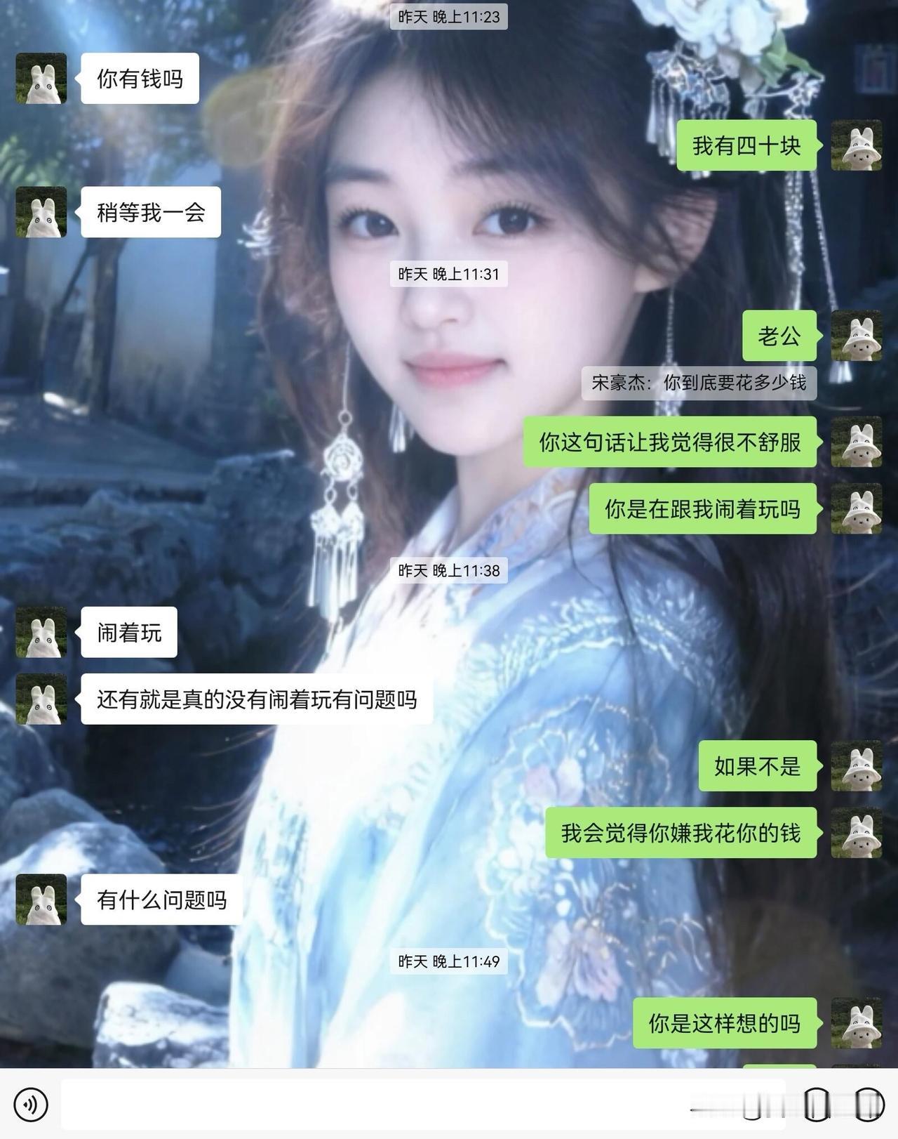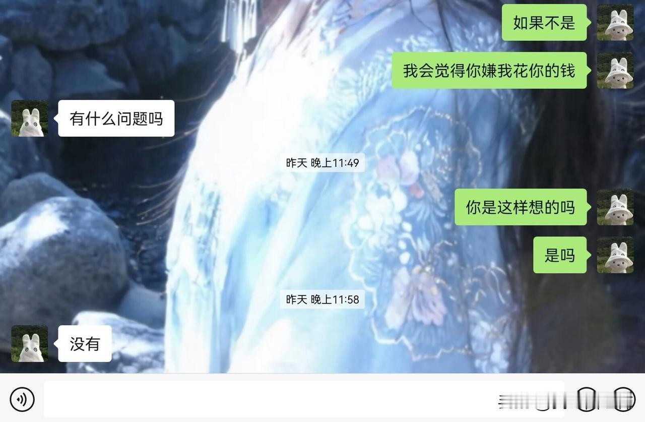 男朋友不愿意给我花钱 前情提要:我大学刚放假 生活费已经花完了 但是很想去吃一家板面(板面八块)因为离家有点远 所以不常去吃 后天家里父母都上班 没人在家 我可以出去自己吃饭 不用他掏钱我也可以管家里要 但是一开始是因为和他打游戏单挑 说输了就请我吃板面 所以才有了这个对话 我和他在一起马上五个月 他并没有给我花过什么大钱(我在读大一 他在读研究生) 当然我并不需要他给我花很多钱 我们两个都是学生所以没有很富裕的经济来给对方花很多钱 他从我们在一起到现在 大概给我花了四百多近五百块钱 所以我没有算计他的钱更不是捞女