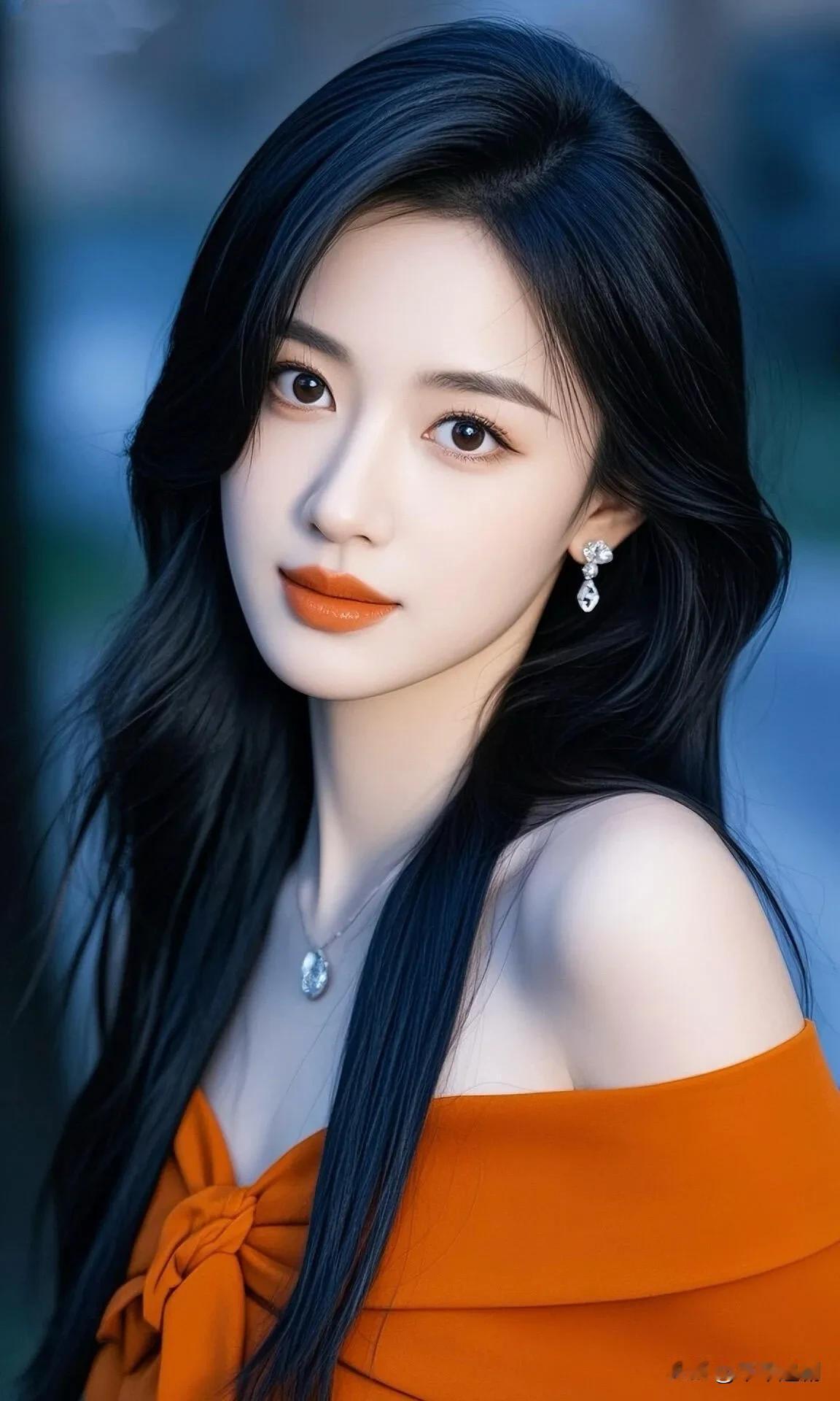 暖橙露肩衫衬着凝脂肌肤,墨色长发拂过肩头,焦糖红唇与衣色相映,在冷蓝背景里漾开明艳又清冷的氛围感。 中年女性特质 温柔高贵的女性