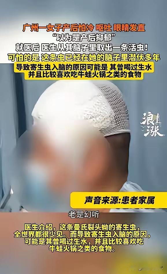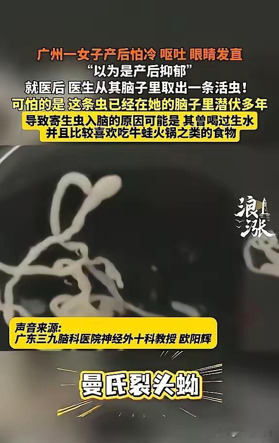 这是一则令人震惊的新闻,也提醒我们关于饮食卫生和健康的高度警惕。以下是我的一些看法: **寄生虫的潜伏危险:**曼氏裂头蚴等寄生虫具有极强的潜伏和隐蔽性,感染后在人体中潜伏多年,甚至藏匿于大脑,造成严重的健康隐患。这提醒我们不能忽视任何身体异常症状,尤其是在产后或免疫力下降时,更应警惕各类潜在的疾病。 **饮食习惯的重要性:**不洁的饮食习惯是感染寄生虫的主要途径。食用未充分煮熟的蛙肉、蛇肉,以及饮用被污染的生水,都可能带来极大的健康风险。家庭和个人应重视生熟食材的卫生管理,避免交叉感染。 **产后身体变化与警示:**产后身体免疫系统可能较弱,更容易被寄生虫等疾病侵袭。家人在照顾产妇时,应密切关注任何异常症状,必要时及时就医。 **公共健康教育:**这样的事件凸显了普及卫生知识和疾病预防的重要性。公众应了解寄生虫的危害、感染途径以及预防措施,提高自我保护意识。 **医疗科技进步的作用:**通过专业的影像设备和精准的手术技术,成功取出寄生虫,挽救了患者的生命,这也体现了现代医学的伟大力量。 建议: 日常生活中做到食材彻底煮熟,生水一定要煮开后再饮用。 避免交叉使用厨具或用不同的砧板处理生熟食物。 产后或身体不适时,应及时就医,进行全面检查。 加强对寄生虫等疾病的认识和预防措施,特别是在农村或偏远地区。 这起事件虽然极端恐怖,但也为我们敲响了健康的警钟。希望大家重视饮食卫生,保护自己和家人的健康安全!寄生虫 体内寄生虫