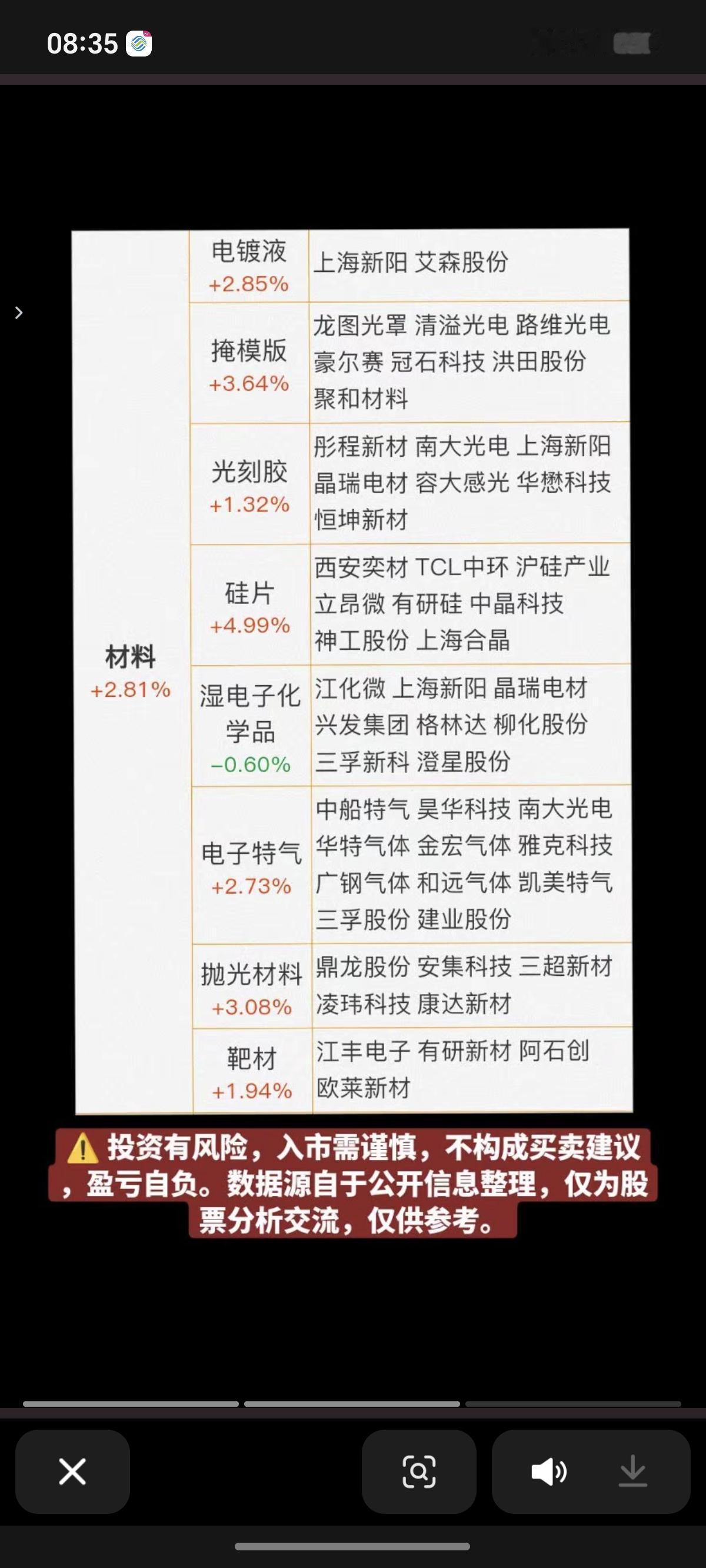 半导体材料! 相关概念股分享! 1.材料:硅片,电镀液,光刻胶,靶材等 2.封测 3.工程,洁净室等 4.代工