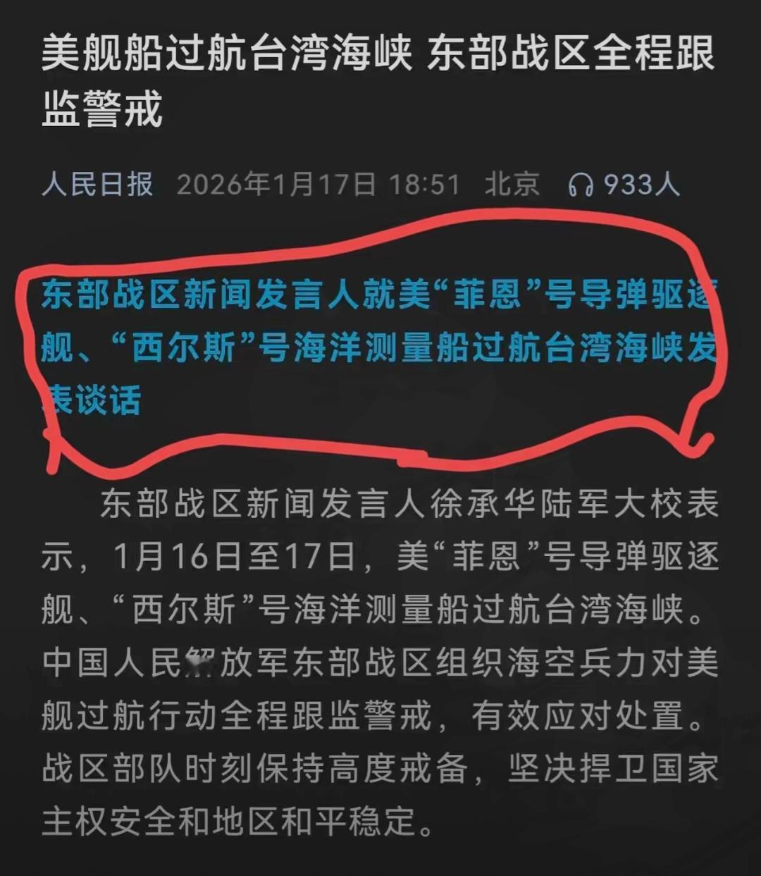 很多人还在那嘲讽,说美军舰艇进台海是因为怕了咱的东风快递,不敢靠太近。 美军舰艇为何驶入台海?并不是因为害怕解放军的东风导弹而不敢靠近,而是试探性的进入,或者说是数据性的进入。 要知道美军的军舰进入台海并不是第一次,也不会是一次,但每次进入的目的和手法都不尽相同。 美军这次进入台海,东部战区全程警戒,随时准备应对,但估计美军这次只是短暂巡航,并不会停留太久。 他们不动手,真不是因为怂,而是账本算得太精。 要知道美军不敢动手,并不是他们不想动手,而是他们已经动手过,而且很清楚动手的后果。他们不动手是因为他们已经算过账了,他们觉得不动手划算,他们觉得不动手更有利于他们找机会,不动手才更符合他们的利益,不动手才更符合他们的良心(如果美军还有良心的话)。 只要利益到位,脸皮算什么? 所以说,美军这次进入台海并不是因为解放军的威慑,而是试探性的进入,并且是试探性的进入一次。要知道,美军这次进入台海的目的不是为了捍卫所谓的航行自由,而是为了探测数据,这一点从美军进入台海后的各种动作就可以看出来。 美军不敢靠近,不是不敢,而是他们已经算过账了,觉得不划算,不合适。不合适的事干嘛做?他们不动手的理由有千千万万,但不动手最好的理由就是合算两个字。 这颗钉子必须尽快拔掉,不然的话,总有一天会成为东方大国发展的绊脚石,总有一天会被美军利用,成为对付东方大国的利器。 美军舰闯台海哪里是为了什么航行自由,分明就是来试探和偷数据的。他们不是不怕解放军的实力,而是算过账,真动手的话经济和政治上都得不偿失。 每次来都溜一圈就走,全程被东部战区盯着,这种低风险的搅局,说到底就是想给我们添堵,注定是白费力气。 各位读者你们怎么看?欢迎在评论区讨论。