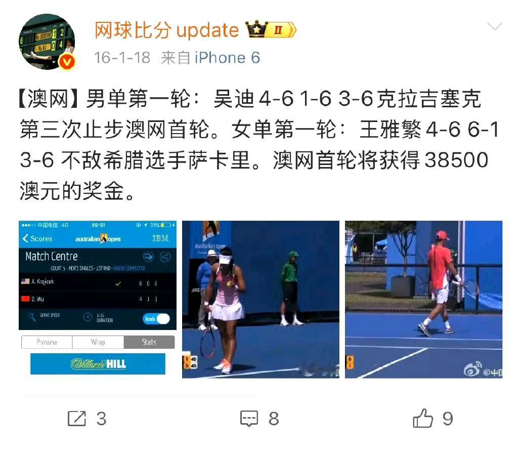 10年前,澳网正赛首轮出局奖金才3.85万澳元,现在资格赛首轮出局都有4.05万澳元。 2026澳网正赛首轮出局奖金15万澳元。澳网组委会只免费给正选球员一间四星级酒店房间,团队成员的住宿自己负责。