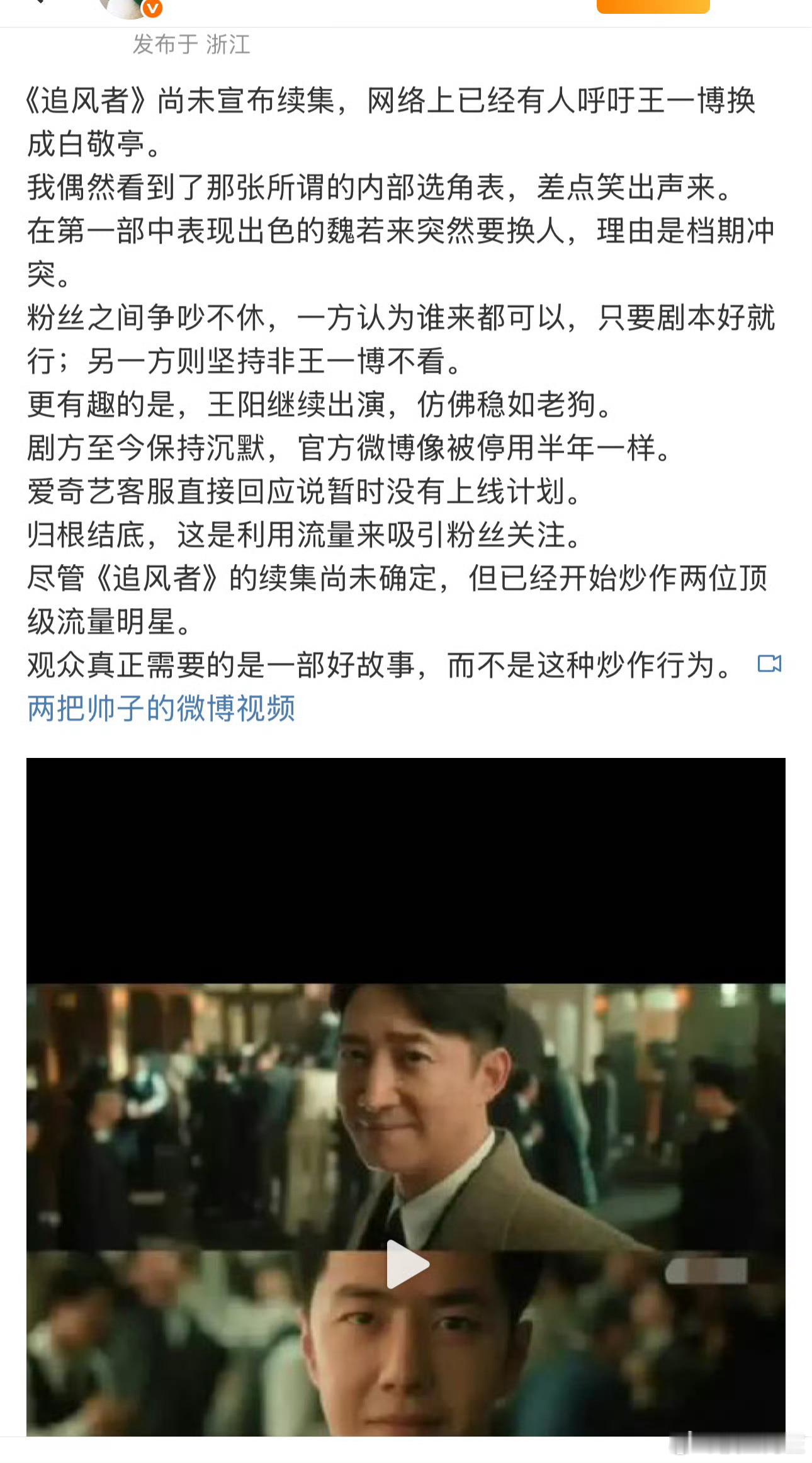 网传追风者2将换男主,从王一博换成白敬亭……