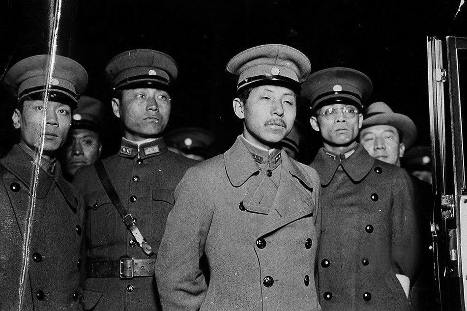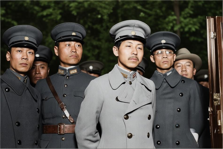 这张老照片拍摄于夜间,张学良(中间,留小胡子)身着双排扣军大衣,周围环绕着几位身着厚实军装的同僚,应该多为东北军少壮派亲信或侍从参谋。 照片很可能摄于1928-1931年间,即张作霖遇刺后他接掌东北军、易帜南京国民政府前后。张学良当时风头正劲:东北易帜(1928年12月)、中原大战后入关助蒋(1930年),照片很可能记录他某次乘专列南下的时刻。