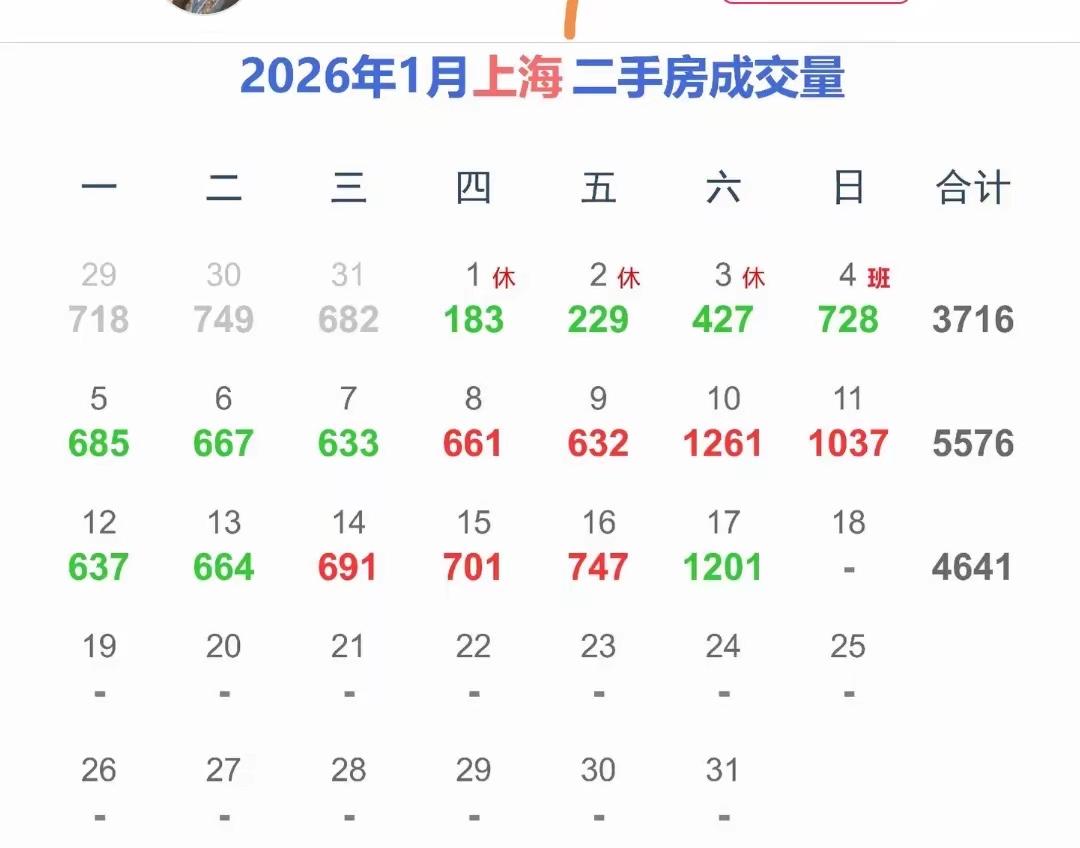 看上海这爆火的成交量,谁还说2026年房价不能企稳甚至上涨? 昨天(1月17日)上海二手房市场又炸了一把,单日成交量达到了1201套,进入2026年1月份以来,已经第二次突破1200套以上,此前1 月10日,成交量达到了1261套。 可能有人会说这不就是以价换量吗?殊不知还有一句话,叫量在价先,如果交易量能持续,房价企稳甚至回升并不遥远。 如果后续政策能够发力,再添上一把火,2026年的房地产市场还是值得期待的。
