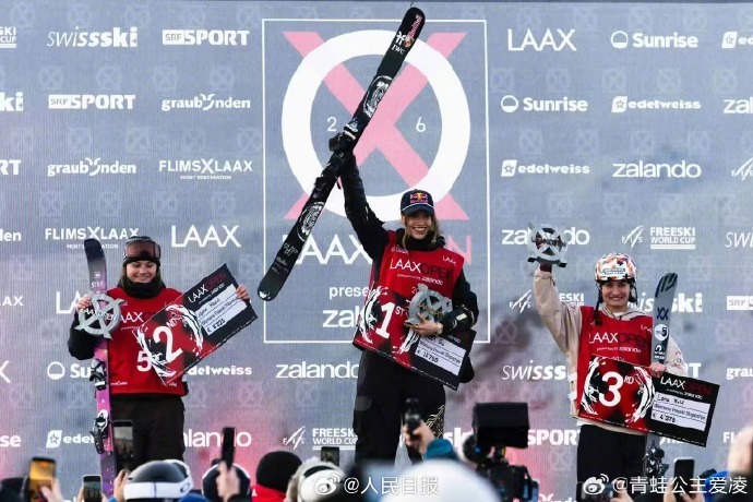 #谷爱凌个人第20个世界杯冠军#【#世界杯坡面障碍技巧谷爱凌夺冠#】北京时间1月17日晚,2025-26赛季自由式滑雪世界杯瑞士莱克斯站举行了女子坡面障碍技巧决赛。中国队运动员谷爱凌以85.13分获得冠军,获得了她在本赛季的首个坡面障碍技巧世界杯冠军,这也是其个人的第20个世界杯冠军。(人民日报)
