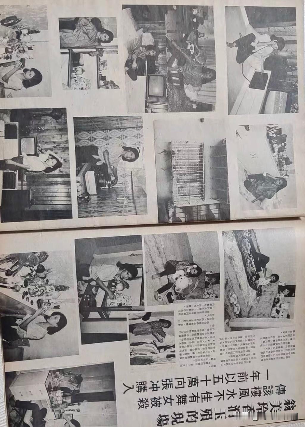🎆翁美玲旧刊报道👇 报道里说,翁美玲这套居所,是她在一年前以50万港元,从艺人张冲手里买下的。 更让人唏嘘的是,当时就有传言:这栋楼风水不佳,之前甚至有舞女在此被害。 那些黑白照片里,是她生前居所的日常陈设: 桌上没吃完的饭菜、摊开的书本、半杯茶水,仿佛主人只是暂时出门,下一秒就会笑着回来。 可现实是,这里成了她人生的终点。 没人知道,她搬进这套房子时,是否听过那些传闻; 也没人知道,在那些独自待在屋里的夜晚,她是否感到过不安。 如今再看这些细节,只让人更心疼那个拼尽全力发光的姑娘。
