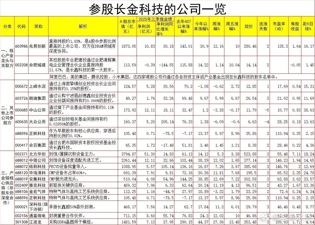 A股芯片最大IPO要来了!长鑫科技递交科创板IPO申请已获受理,带来哪些投资机会?好家伙!A股又要搞大事情了!继摩尔、沐曦之后,2026年开年就扔出个王炸——长鑫科技科创板IPO申请已经受理了!这可不是小打小闹,这可是咱们中国芯片圈的“巨无霸”要登场了!先给新来的朋友科普一下,长鑫科技是干嘛的?简单说,它是咱们中国大陆规模最大、技术最先进的DRAM芯片研发设计制造一体化企业。DRAM是个啥?就是你电脑的内存条、手机的运行内存,这玩意儿的技术壁垒高得很,以前基本被国外巨头垄断。现在咱们自己的“扛把子”要上市了,你说牛不牛?长鑫科技的投资价值,那可不是吹的:赛道王者,国产替代核心: DRAM市场空间巨大,而且这东西关乎国家信息安全,国产替代是大势所趋。长鑫科技作为国内这个领域的“带头大哥”,技术最先进,规模最大,政策扶持、市场需求都不是问题。想想看,以前我们买内存,价格被人家卡脖子,现在咱们自己能造了,这意义多大!估值炸裂,前景更具想象: 人家IPO前估值就已经1500亿了!摩尔和沐曦,这俩之前上市火得一塌糊涂的主儿,Pre-IPO轮估值加起来也就四百多亿,还不够长鑫科技的“零头”。再看看摩尔首日涨400%,沐曦涨692%,长鑫科技这赛道、这卡位,是不是更有想象力?募资巨兽,底气十足: 拟募资295亿!这可是科创板开板以来第二大IPO,仅次于当年的 中芯国际 。融这么多钱干嘛?肯定是扩产、搞研发,把技术再往上提一提,把规模再做大做强。有钱好办事,这公司的发展后劲,你品,你细品!市场对于真正有前景的高科技公司,向来是高期待的,只要公司是好公司,融资再多也欢迎!那么问题来了,这么牛的公司,咱们普通散户咋参与呢?直接打新?难!比中彩票还难,大部分中签估计都落机构口袋里了。想直接喝到“头道汤”,对咱们小散来说确实有点难。别急,咱们可以玩“曲线救国”啊!也就是说,买那些投资了长鑫科技的公司,或者是长鑫科技的上下游合作伙伴。 这就给A股带来不少投资机会了:长鑫科技的“朋友圈”——那些参股它的上市公司: 去扒一扒,哪些A股公司在长鑫科技上市前就投了它,成了它的股东。一旦长鑫科技上市后股价大涨,这些参股公司的投资收益也会水涨船高,反映到它们自己的股价上,说不定就是一波行情。产业链上下游的“卖水人”:设备供应商: 造芯片离不开各种高端设备,比如光刻机、刻蚀机、薄膜沉积设备等等。长鑫科技扩产,肯定要买买买设备,这些设备供应商是不是就有生意了?材料供应商: 生产DRAM需要各种特种气体、光刻胶、靶材、抛光材料等等。长鑫科技产能上去了,对这些材料的需求也会大增。封装测试企业: 芯片生产出来之后,还需要封装测试。长鑫科技的产量越大,这些封装测试公司的订单可能就越多。所以啊,长鑫科技这颗“大卫星”上天,不光是它自己风光,整个A股的半导体产业链都可能跟着沾光。这就像一场财富盛宴,主菜可能抢不到,但旁边的“开胃小菜”和“甜点”也能让人大快朵颐。下边图表是参股长鑫科技的相关公司,股价都表现不错,想从长鑫科技长市中分一杯羹的投资者,不妨关注与其关联的公司,不失为明智选择。感兴趣投资者可收藏起来,仔细揣摩。