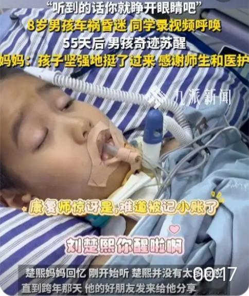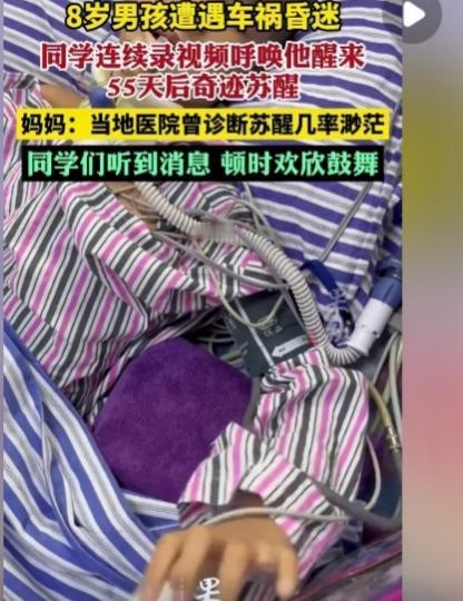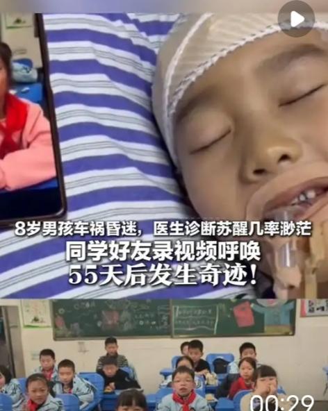 奇迹!8岁男孩遇车祸昏迷,同学连续录视频呼唤,他55天后醒来!医院曾诊断苏醒几率渺茫 谁能想到,一群小学生的“碎碎念”,竟能打败医学判定的“渺茫希望”?2025年11月22日清晨,8岁男孩刘楚熙背着书包蹦跳着上学,却在过马路时被失控车辆撞倒,当场陷入重度昏迷。当地医院的诊断像一块巨石砸在家人心上:“颅脑损伤过重,苏醒几率微乎其微,做好长期护理的准备吧。” 绝望之际,湘雅医院的医生抛出一句关键建议:“孩子还小,神经可塑性强,多给他听熟悉的声音,或许能创造转机。”这句话,成了照亮黑暗的第一束光。楚熙妈妈立刻联系学校,当班主任把情况告诉全班同学时,教室里的抽泣声瞬间此起彼伏。没有成年人的复杂考量,孩子们只用最纯粹的本能行动——有人对着手机喊“楚熙快醒,你还欠我一块橡皮没还”,有人唱着两人约定好的儿歌,有人举着画满太阳的贺卡喊“我们等你回来当小组长”。 这些带着奶气的呼唤,被老师一一录制下来,变成了楚熙病房里24小时不中断的“唤醒旋律”。妈妈还翻出学校的起床铃、广播操音乐,甚至楚熙课堂上回答问题的录音,循环播放。那些日子里,病房里没有绝望的死寂,只有孩子们稚嫩的声音、家人哽咽的叮嘱,与医疗仪器的滴答声交织成生命的交响。 跨年那晚,当好友录制的《孤勇者》在病房响起时,一直毫无反应的楚熙,眼皮突然轻轻颤动了一下!妈妈激动得浑身发抖,赶紧把手机贴得更近,孩子们的欢呼声、鼓励声接连不断,楚熙的手指竟慢慢蜷缩起来。这个微小的动作,让所有人看到了希望的火苗。此后的日子里,同学们的视频更新从未间断,有人分享课堂趣事,有人汇报考试成绩,有人说“楚熙你再不醒,你的座位都要被老师安排给新同学啦”——带着玩笑的呼唤,藏着最真挚的牵挂。 55天后,当“妈妈”两个字从楚熙口中虚弱地吐出时,病房里爆发出压抑已久的哭声。主治医生感慨:“昏迷超过一个月,苏醒概率不足5%,楚熙的奇迹,是爱与医学的双重胜利。”那些看似不起眼的儿童式呼唤,实则是最强大的生命能量,它们穿透了意识的迷雾,唤醒了沉睡的神经。 在这个总有人抱怨人情淡薄的时代,这群孩子用行动告诉我们:纯粹的爱从来都拥有创造奇迹的力量。楚熙的苏醒,不仅是一个医学案例的成功,更让我们看到了人性中最珍贵的底色——同窗之谊的纯粹、亲情守护的执着、医者仁心的坚守。愿这份奇迹能照亮更多困境中的人,也愿我们永远相信,只要不放弃,爱就会带来意想不到的惊喜。此刻,你是否也被这份童真与坚守打动?欢迎在评论区留下你的祝福,一起为楚熙的康复加油!车祸生还奇迹 河南男孩昏迷 #8岁男童遇车祸