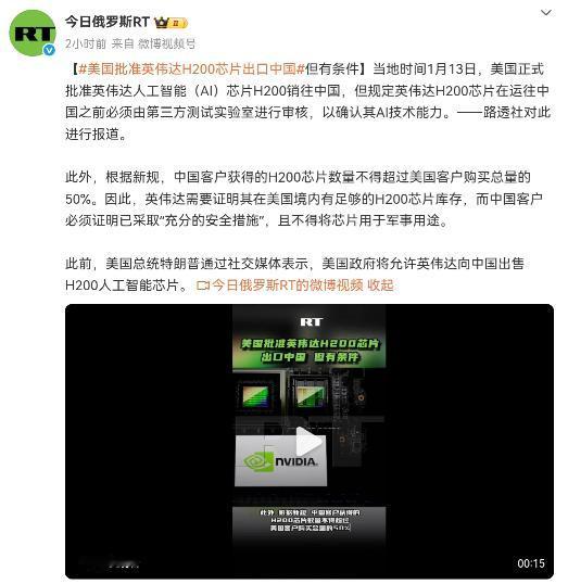 美国政府正式批准英伟达H200出口中国,不过批准的条件也清楚说明,H200是不安全的。 1.H200芯片运往中国前,要经过第三方实验室审核。显然这不是英伟达芯片出口的正常程序,这个审核要干什么,会干什么,并不知道。联系到美国政府和议会相关人员,说英伟达的AI芯片会装上后门,这样的审核,不能不能让人有很多联想。 2. H200芯片不能得超过美国客户购买的总量50%,中国客户必须证明已采取充分的“安全措施”,这一方面意味了供货并没有安全,中国企业不是需要就可以购买,且也弄不清这些“安全措施”,对于中国客户意味了什么,会不会损害中国利益。 美国政府这套操作确实透着股说不出的别扭,一边放行H200入华,一边用各种限制把“不安全”的标签贴得明明白白。这些附加条件压根不是常规出口流程该有的,每一条都藏着让人不安的伏笔。 就说那个第三方实验室审核,新规里写得很清楚,所有运往中国的H200都得经过美国本土实验室的抽检。 这些实验室还得是和交易双方没利益关系的美国机构,核心任务是验证芯片的性能参数。可问题在于,正常出口哪用得着这一步?之前英伟达卖其他芯片从没这套流程,现在突然加这么一道关,审核的范围真就只限于性能吗?没人能给出准话。 更让人犯嘀咕的是美国政界那些风言风语。不少议员早就公开嚷嚷,要求对出口到“竞争国家”的芯片留后门,既能监控使用情况,还能随时远程关停。 虽说英伟达自己否认装了后门,但斯诺登曝光的“棱镜门”摆在那,美国情报机构的手能伸多长谁都清楚。现在这不明不白的第三方审核,很难不让人联想是不是在给所谓的“后门”做掩护,毕竟审核的标准和细节全由美方说了算。 50%的供货限额更透着霸道。新规直接把中国客户的采购量卡死,不能超过美国本土销量的一半。这哪是正常的商业供应,分明是把中国市场当成了边角料处理。 更关键的是,英伟达现在本土主力卖的已经是更先进的Blackwell系列,H200的产能本来就主要盯着中国市场,这个限额看似有数字,实际执行起来全是美方说了算,中国企业就算有刚需也得看人家脸色。 中国客户要出具的“充分安全措施”证明更像是个无底洞。新规没说清楚这些措施具体要达到什么标准,只笼统提了物理安保、用户身份核验这些模糊要求。 可结合美国之前想在芯片里留后门的心思,这些所谓的“安全措施”会不会变成美方窥探数据的借口?没人能打包票。 要是真按美方的隐性要求来,中国企业的核心数据安全、业务自主性都可能受影响,这损害的可是实实在在的国家利益。 更让人无奈的是,英伟达已经给中国客户提了苛刻条件,要求预付全款才能拿货。这背后就是看准了中国企业的算力需求,又吃定了美方限制带来的稀缺性。 中国企业明明是掏钱的买家,却得同时满足美方的配额限制、安全证明、第三方审核三重枷锁,稍有不慎就可能拿不到货。 美国政府这套组合拳打得很精,表面说是“逐案审查”的政策调整,实则是把技术管控的绳子越收越紧。既想通过卖芯片赚中国市场的钱,又怕中国拿到算力后实现技术突破,才搞出这么套矛盾的限制条款。 好在中方没被动接招,现在所有H200进口都得经过多部门联合审查,不仅要排查后门风险,还得评估国产替代的可行性。这招算是把主动权抢回了一些,毕竟芯片安全与否,不能只听美方一面之词。 说到底,美国这些限制条件本质上就是技术霸权的体现,用“安全”当幌子搞双重标准。中国企业要拿芯片得处处受限,美方却连审核细节都藏着掖着。这种不对等的交易里,所谓的“安全措施”从来不是为了保护中国利益,只是美国维护技术垄断的工具而已。 信源:环球网报道(2026年1月15日 核心条件披露)