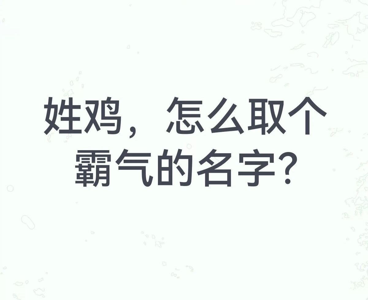 鸡也是一个姓?今天头一次听说。怎么取名字,显得既霸气又好听呢?