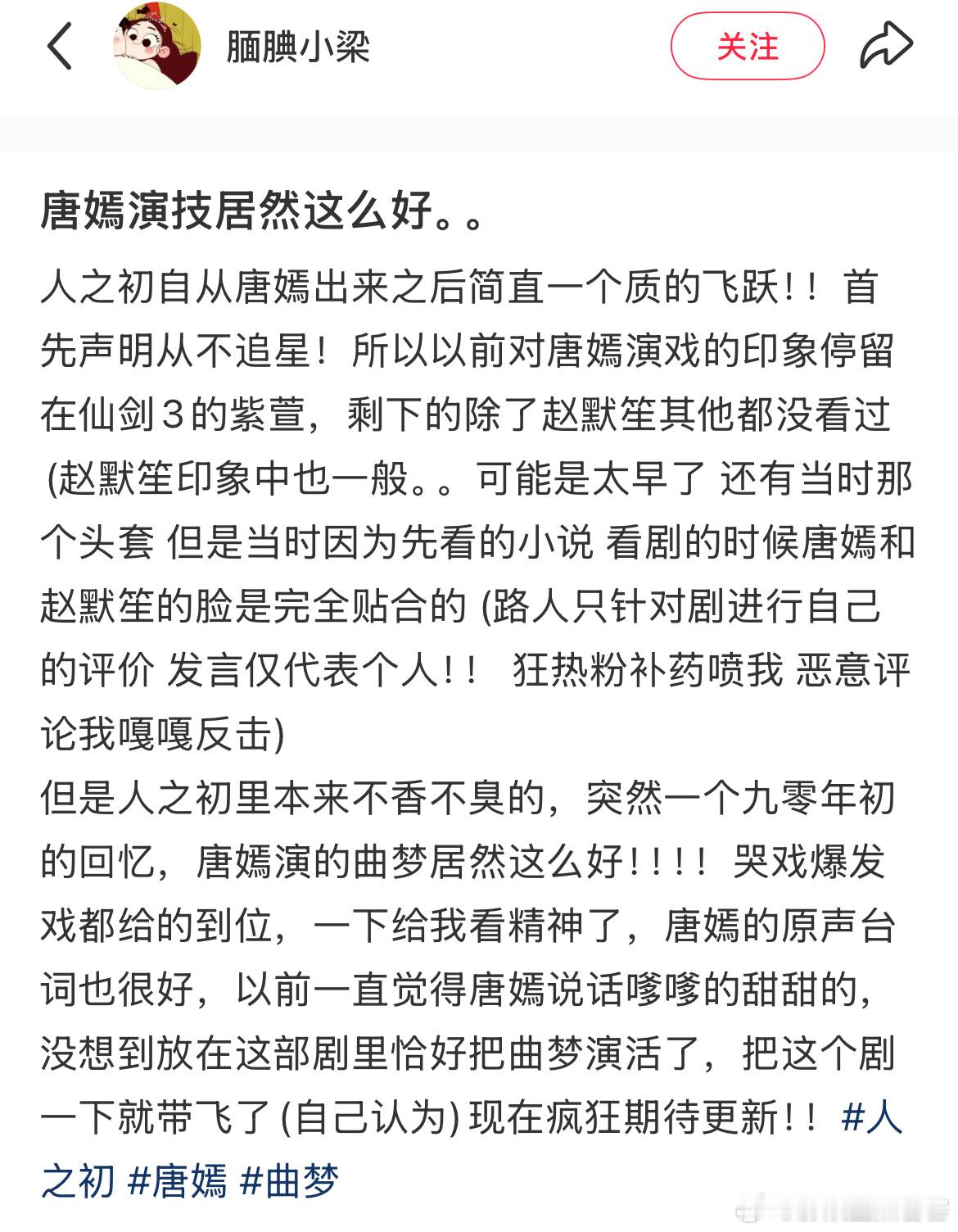 【拾遗】网友感叹唐嫣演技居然这么好。。人之初自从唐嫣出来之后简直一个质的飞跃