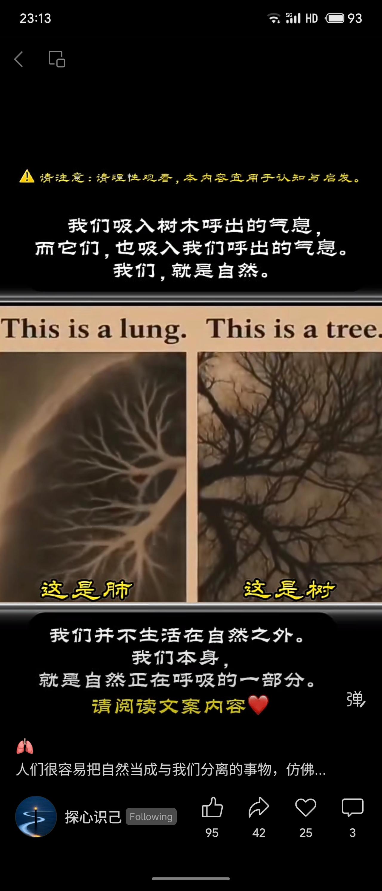 人类与树木通过呼吸紧密相连,彼此交换气息,形成生命的循环。这揭示我们并非置身自然