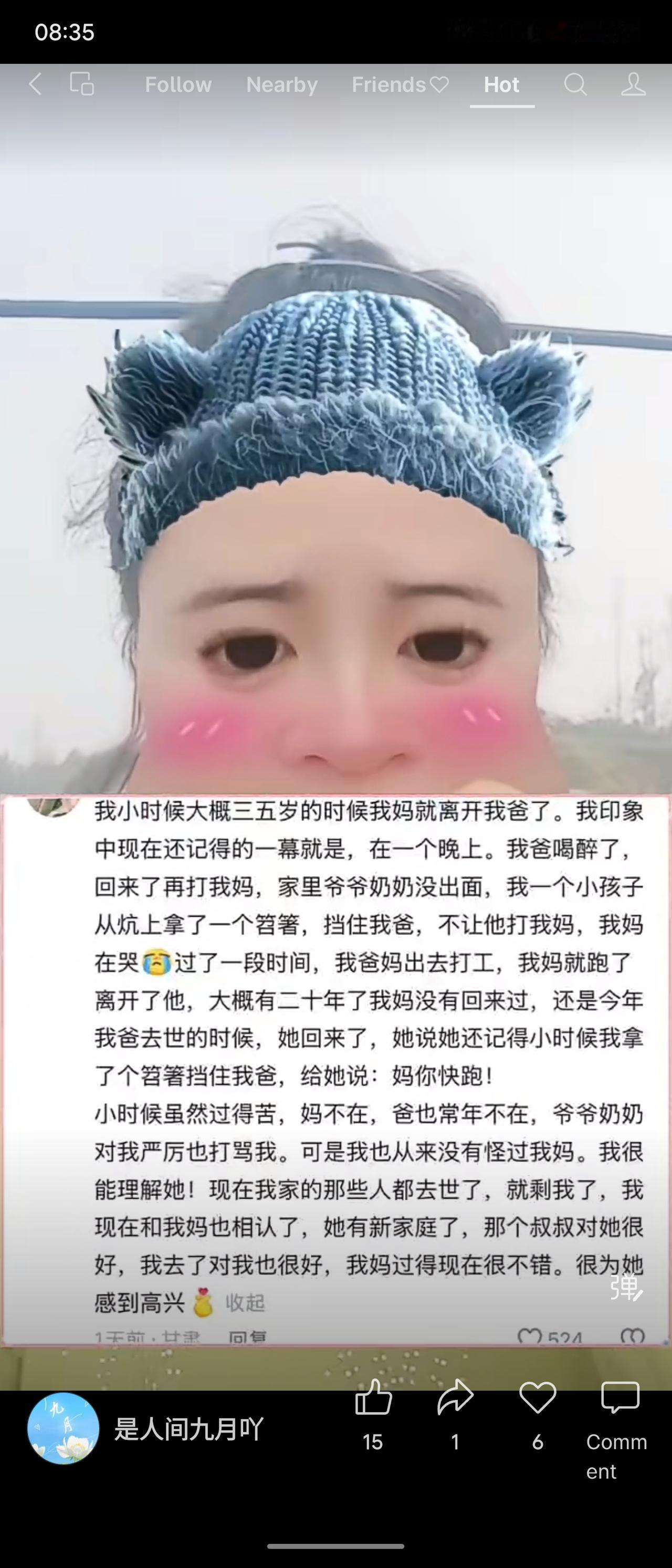 幼时目睹家暴,曾执帚护母劝逃。母亲离家二十载,直至父亲去世方归。如今母子相认,母亲已有幸福新家,“我”始终理解且为她欣慰。