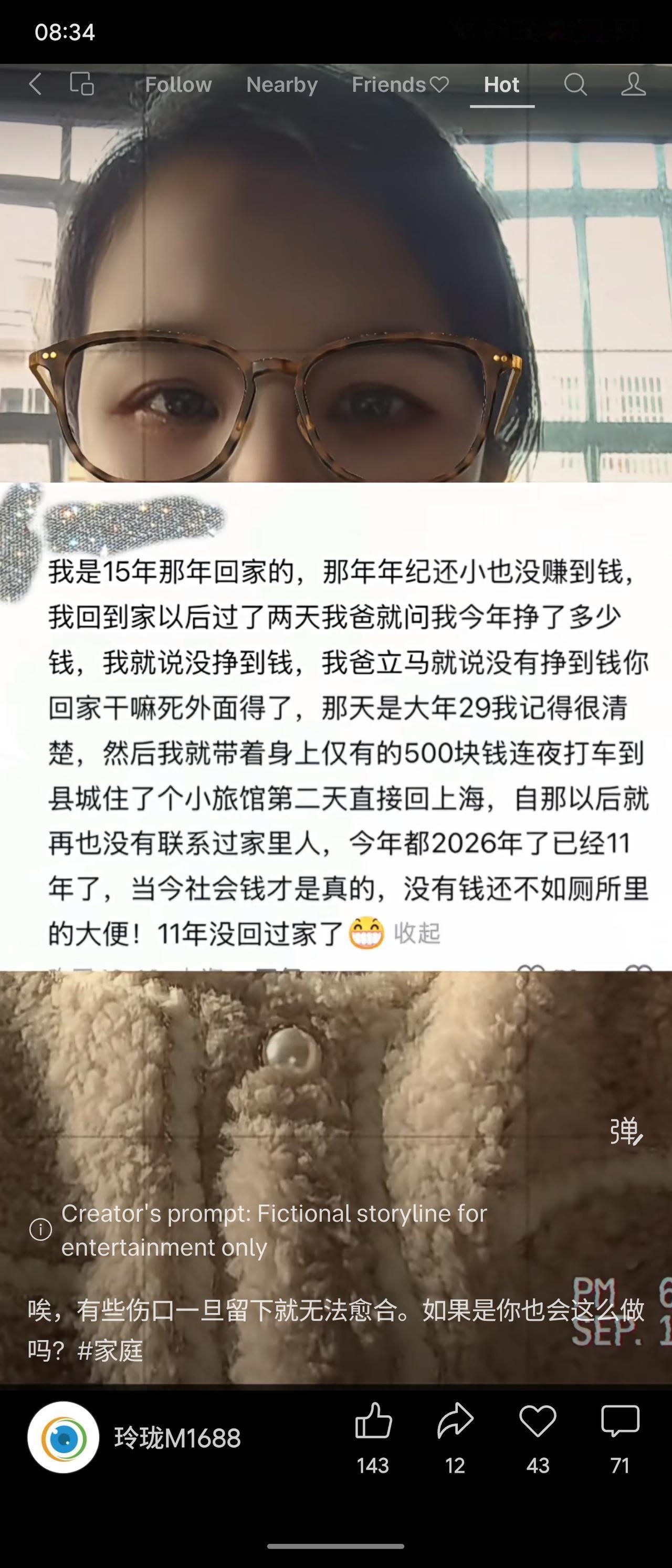 2015年春节,因被父亲斥责“没挣到钱就别回家”,他负气离家,仅带500元返回上海。此后十一年间,他断绝了与家人的联系。故事折射出金钱压力下的亲情裂痕与个体抉择。