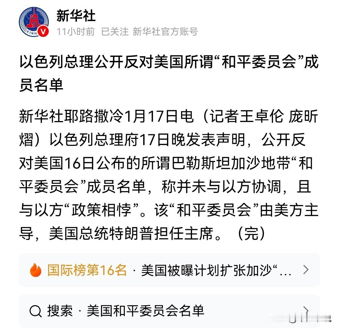特朗普会不会和以色列“掀桌子” 昨天以色列总理内塔尼亚胡公开反对特朗普公布的“和平委员会”名单,而“和平委员会”由特朗普担任主席。 特朗普现在正处在抓捕马杜罗之后的亢奋期,谁反对特朗普就是与其作对。甚至现在特朗普已经发展到谁“忤逆”他就和谁过不去的地步,那么现在就看特朗普会不会和内塔尼亚胡掀桌子了。