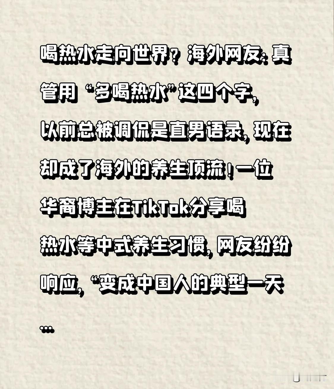喝热水走向世界?海外网友:真管用喝热水走向世界?海外网友:真管用 “多喝热水”