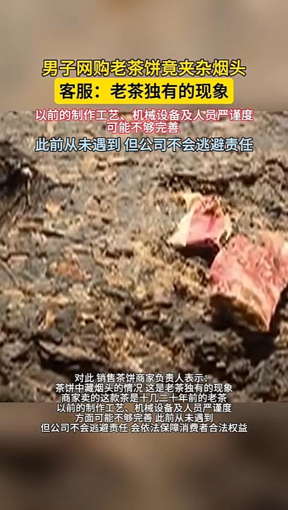 近日,广东肇庆,一男子拆开两年前买的茶饼时,发现里面竟藏着一根吸剩的烟头!这让男子非常恶心,觉得别人吸过的,上面肯定还沾着口水,结果质问客服时,对方却称这是老茶独有现象,代表这茶饼货真价实! 麻烦各位读者点一下右上角的“关注”,留下您的精彩评论与大家一同探讨,感谢您的强烈支持! 你能想象,花钱买的茶叶,打开后竟然藏着别人吸剩的烟头?最近,广东肇庆一位爱茶的市民老李就遇上了这种让人难以接受的“惊喜”。 老李是个喝茶有年头的老茶客,平时喜欢在网上淘点货色。他两年前在某电商平台看中了一款自称“老年份、正宗云南普洱”的茶饼,看到店铺销量和主播宣传都不错,价格还算合理,就买了几饼茶叶。 普洱讲究越陈越香,老李也没急着喝,就把茶饼放在储藏室。直到这几天,天冷了,他才想起买的茶叶,准备拿出来解解馋。 拆开包装的那一刻,异样的味道让老李有些疑惑。他用手掰开茶饼,突然发现一根带着烟灰的烟头嵌在茶叶里。 那种恶心感,只有亲身经历才能体会,毕竟,谁也不愿意把别人嘴里抽过的东西泡进自己的杯子里。老李接着又找出了几根烟头,甚至还有不同颜色的烟蒂混杂在茶叶之间。想到这些东西和茶叶居然在一块,他当场就没了喝茶的心情。 气愤之下,老李立刻联系了商家,要求给个说法。商家客服的回复却让他大跌眼镜:对方称,“这属于老茶的正常现象,说明是正宗的老茶饼,才会有这种‘历史痕迹’。” 老李听完差点没气笑,这种说辞显然是把顾客的智商当成了儿戏。老李据理力争,客服却不断推脱,甚至最后让他去找相关部门投诉。 无奈之下,老李向市场监管部门投诉。商家负责人这才出面,承认可能是历史生产管理不规范导致的意外,并表示可以协商退换货。 可老李心里清楚,钱退回来是一回事,食品安全问题才是根本。他想到,如果不是自己多留了个心眼,烟头很可能就被泡进茶水,危害健康。更何况,这样的茶叶流入市场,受害的绝不会只是他一个人。 茶叶本是国人餐桌上不可或缺的饮品。可近年来,随着电商平台和直播带货的盛行,茶叶市场越来越鱼龙混杂。 消费者追求性价比,商家却不断用“年份”“稀缺”这些标签做噱头,背后却往往是低价劣质、卫生状况堪忧的产品。老李的遭遇并不是个例,类似的“异物门”在各类食品中屡见不鲜。 但面对消费者的质疑,有些商家不仅不道歉,反而用各种荒唐理由搪塞责任,试图混淆视听。客服所谓的“老茶现象”,其实是对食品安全最基本底线的亵渎。 如果监管部门不加强执法,这样的事件只会层出不穷。每个人都可能成为下一个受害者。 老李的经历,也给所有消费者提了个醒:面对商品宣传不能只看表面,尤其是入口的东西,更要多留心眼。买茶叶、买食品,不仅要关注价格和包装,更要留意品质和卫生来源。遇到问题不要忍气吞声,依法维权才是对自己和家人负责。 食品安全,绝不是一句“老茶特色”三言两语就能敷衍过去。它关系到千家万户的健康,也是市场诚信的根本。 你们说呢? 信源:男子网购老茶饼竟夹杂烟头,客服:老茶独有的现象——半岛晨报