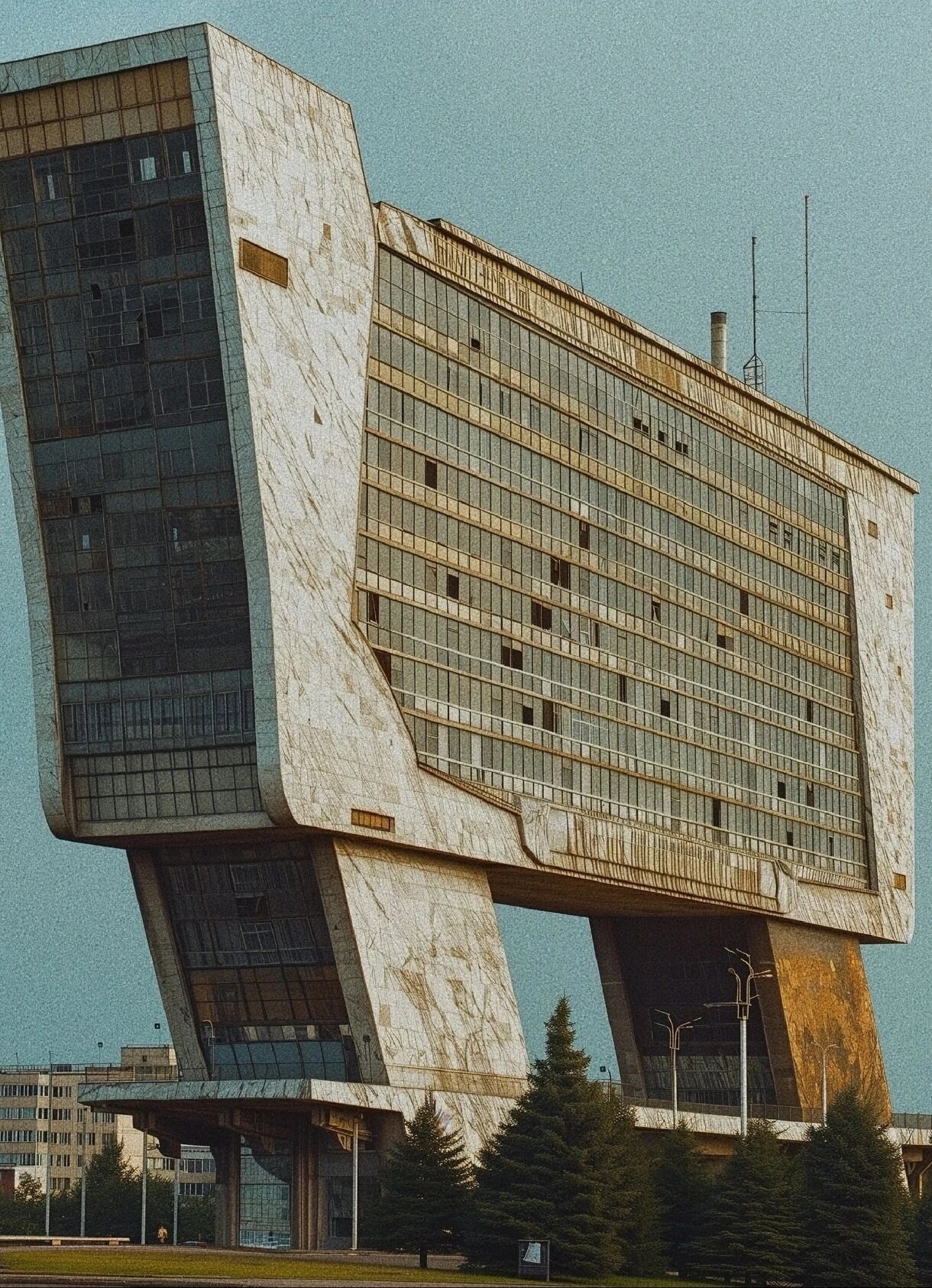 苏联的建筑追求宏大、气派,算是当年的未来主义风格,废土科幻感