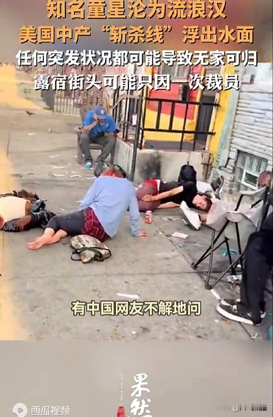 怪不得美国街头有这么多的流浪汉, 以前还理解不了,经常能看到美国有两种截然不同的现象,一种是西装革履,经常出高档写字楼,餐厅的精英,另一种就是布满接头的穿着肮脏,吃了这顿没有下顿的流浪汉。 原来这里已经形成了了“斩杀线”这一淘汰机制,就算是中产,就算是有正式工作,但只要生活有一点意外,就很容易陷入无家可归,导致求职难,导致信用崩盘,最后被社会系统“淘汰”的境地,而坠落到这一步,可能仅仅需要三五个月的时间。 而牢A把这个总结了出来,并发布出来,也是扯下了美国的遮羞布。