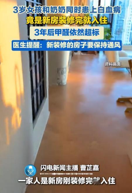 “悲剧还是发生了!”河南南阳,一男子在新房刚装修好时,就带着全家搬进去住,因为平时工作忙,所以大多数时间都是母亲和女儿在家,结果女儿身体不适去医院检查,竟发现得了白血病,治疗期间,母亲也确诊了白血病!医生:甲醛超标害的! 新房本该是承载家庭幸福的港湾,却可能暗藏致命陷阱。 在河南南阳的一家的遭遇,让无数人揪心不已,也为所有装修新居的家庭敲响了警钟。 通过多年来的努力,男子终于兑现了对家人的承诺,将一套精心装修的新房钥匙握在手中。 为了让母亲和3岁的女儿住得更舒适,他几乎给每个房间都做了定制收纳柜,地面铺满复合地板,客厅还做了复杂的吊顶造型,装修材料都选了商家口中的“环保款”。 装修完工通风三个月后,闻不到明显异味的男子,便带着全家搬了进去。 男子和妻子常年早出晚归忙于工作,家里大部分时间只有母亲和女儿相伴,老人带着孩子几乎足不出户,吃饭、玩耍、休息都在室内。 平静的日子过了没多久,女儿的身体率先发出了警报,孩子开始反复发烧,退烧药吃了就好,停药就复发,还总说没胃口,以前爱吃的零食也碰都不碰。 更让家人担心的是,孩子刷牙时频繁牙龈出血,脸色也越来越苍白,甚至出现了如厕异常的情况。 一开始,家人以为是换季感冒加上孩子体质弱,没往严重的地方想,直到症状持续了一个多月不见好转,才慌忙带着孩子赶往医院。 河南省肿瘤医院的检查结果如同晴天霹雳,3岁的孩子被确诊为急性髓系白血病。 这个消息让男子夫妻瞬间崩溃,他们从未想过,这种只在新闻里见过的重病,会降临到自己孩子身上。 悲痛还未消散,新的打击接踵而至,照顾孩子期间,母亲总说自己头晕乏力,走几步路就心慌气短,却一直瞒着家人,怕给本就艰难的家庭添乱。 直到一次在医院走廊险些晕倒被护士扶住,家人才强行带她做了全面检查。 当同样的“急性髓系白血病”诊断结果摆在面前时,男子一家彻底陷入了绝望,祖孙二人短期内相继患上同一种血液疾病,这样的情况在临床上并不多见。 接诊的医生第一时间将目光投向了他们的生活环境,在排除遗传病史后,新房装修成为了最大疑点。 男子起初十分笃定,房子已经装修三年,且一直通风,怎么会有问题。 但专业检测机构上门后,结果却推翻了他的认知:室内甲醛浓度严重超标,远超国家《室内空气质量标准》中规定的0.08mg/m³限值。 医生的解释让男子恍然大悟,甲醛的释放周期长达3到15年,三年时间远远不够,且冬季关窗取暖、夏季关窗吹空调的习惯,让室内空气无法有效流通,有害物质持续积聚。 更关键的是,孩子呼吸频率快,老年人免疫和造血功能下降,二者长期全天候暴露在污染环境中,受到的伤害远比偶尔在家的年轻人严重。 而男子口中的“环保材料”,其实也存在隐患。 业内人士指出,单件材料达标不代表全屋安全,过度装修导致材料使用量过大,会产生污染叠加效应,就像一杯酒无害,多杯混饮就可能伤身。 男子家满屋的定制柜、复合地板和吊顶,恰恰成为了甲醛超标的主要来源,这起悲剧并非个例,近年来,因新房甲醛超标引发的健康问题屡见不鲜。 事实上,甲醛在低浓度时未必有明显气味,且人的嗅觉会逐渐钝化,空气清新剂等更会掩盖污染真相。 单纯依靠通风无法从根本上解决问题,尤其是在通风条件不佳的户型中,必须结合专业检测和治理手段。 面对男子一家的遭遇,网友们纷纷展开讨论,分享自己的装修避坑经验。 有人建议装修要简约适度,减少不必要的定制家具和复杂造型,为空气流通留出空间。 有人提醒新房装修后至少通风半年以上,入住前一定要做专业空气检测;还有人分享了选择环保材料、安装新风机等有效降低污染的方法。 这些来自大众的经验之谈,恰恰契合了专业人士的建议:预防甲醛污染,要从装修设计、材料选择、通风检测等多个环节入手,不能抱有任何侥幸心理。 房子是用来住的,不是用来“炫”的,健康永远是装修的第一准则。 男子一家的悲剧,给所有追求新居梦想的家庭敲响了警钟,装修的本质是为了提升生活品质,而非用健康换取表面的美观和档次。 那些看似精致的复杂设计、满屋的定制家具,若以牺牲空气质量为代价,最终只会得不偿失。 金钱可以再赚,房子可以再装,但健康一旦失去便难以挽回。 希望每个装修新居的家庭,都能铭记这份惨痛教训,把健康安全放在首位,让新房真正成为守护家人幸福的港湾,而非隐藏风险的陷阱。
