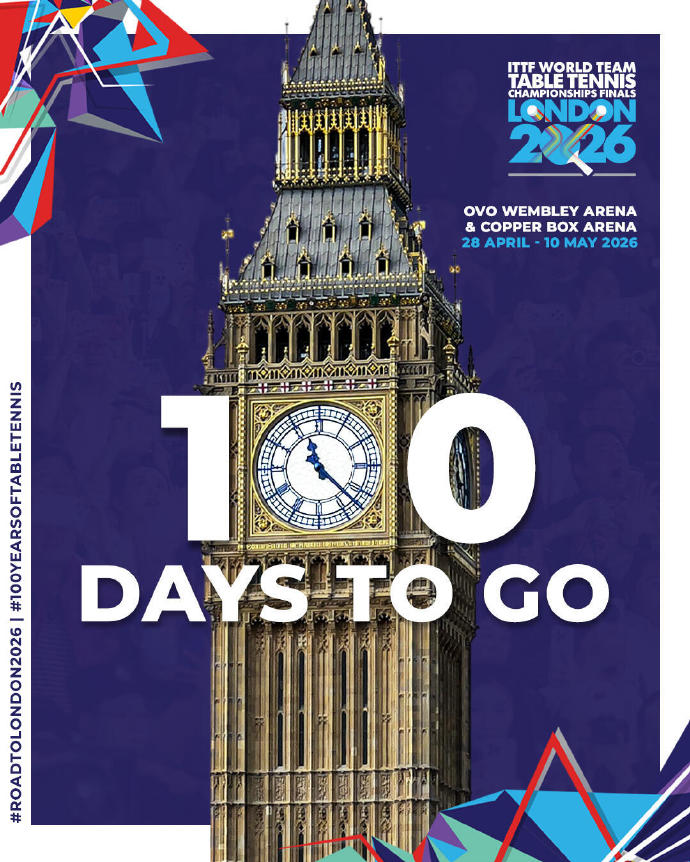2026国际乒联伦敦世界乒乓球团体锦标赛进入百日倒计时,赛事将于4月28日至5月10日举办。小组赛(4月28日-5月1日)在铜箱体育馆开打,淘汰赛(5月2日-10日)移师OVO温布利体育馆。作为世乒赛百年后重返起源地的赛事,本届规模创下历史之最,男女团体各有64支队伍参赛,13天的赛程将上演精彩的乒乓对决