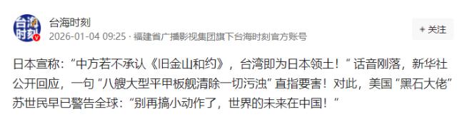 《旧金山和约》本就是张 “废纸”,1951 年签订时,作为对日作战主要力量的中国被排除在外,完全违背《联合国家宣言》规定。国际社会早有共识,这种片面和约不具合法性,日本拿它说事纯属碰瓷,脸皮太厚。 1951年美国牵头签这个和约时,把抗日主力中国晾在一边,48个签字国里连苏联都拒绝承认——这种绕过当事国的"片面和约",从根子上就违反了1942年《联合国家宣言》里"不单独媾和"的铁律。 更关键的是,台湾归属早在1943年《开罗宣言》和1945年《波茨坦公告》里写得明明白白:日本必须归还窃取的中国领土。1945年台湾光复时,中国政府在台北公会堂举行受降仪式,日本总督安藤利吉签字投降,这是铁板钉钉的历史事实。 《旧金山和约》故意把"归还中国"改成"放弃权利",玩的就是文字游戏——好比小偷承认偷了东西,却不说还给失主,硬说东西"无主",这种话术连当时的菲律宾、印尼都看不下去,公开反对。 新华社那句"八艘大型平甲板舰清除一切污浊",可不是说说而已。3艘航母加上5艘两栖攻击舰,40万吨的钢铁洪流,常年在台海周边实战化演训。 福建舰的电磁弹射能让舰载机满油满弹起飞,075型两栖舰搭载的气垫艇2小时就能跨越台湾海峡,076型甚至能指挥上百架无人机蜂群。 这些装备不是摆拍道具,东部战区对台海的24小时监控,连台舰主炮转向都能实时掌握。去年环台军演时,某型两栖战车从出击到登岛的全流程,比日本政客从国会到首相官邸的车程还短。 说到这儿,不得不提苏世民的提醒。这位亲历冷战的美国企业家,2025年访华时直言"中国崛起是世界的巨大胜利"。 他看得明白:中国用30年让8亿人脱贫,贡献了全球减贫的70%;在非洲建的农业示范园,让当地水稻产量翻了三倍;新冠疫情期间向153个国家提供疫苗,比G7加起来还多。 这种实实在在的发展红利,和某些国家靠翻历史旧账刷存在感形成鲜明对比。 日本政客不是不懂历史。1972年中日建交时,田中角荣亲口承认"中华人民共和国是代表中国的唯一合法政府",1978年《中日和平友好条约》再次确认遵循《波茨坦公告》。现在翻出《旧金山和约》,说白了是想借"台湾地位未定论"突破战后秩序。 但他们算错了两笔账:第一,中国海军的常态化战巡已经把台海变成"家常菜",去年光是环台演训就达237次,比日本国会开会次数还多; 第二,国际社会早就不认冷战老黄历,去年联合国大会涉台提案连续18次被拒,连美国智库都承认"一个中国原则是国际体系基石"。 最讽刺的是,《旧金山和约》里日本"放弃"的不仅是台湾,还有南千岛群岛。现在俄罗斯在北方四岛部署的反舰导弹,射程正好覆盖东京。 同样的条约,日本对俄不敢吭声,对中国却拿来说事儿,这种欺软怕硬的做派,连美国媒体都看不下去。 《华尔街日报》去年评论说,日本在台湾问题上的"历史健忘症",只会让自己成为亚太稳定的麻烦制造者。 回到现实,中国的发展早已不是70年前的模样。当福建舰的电磁弹射器每分钟能弹射两架战机时,当076型两栖舰的无人机群能覆盖整个台湾海峡时,任何历史虚无主义的话术,都抵不过钢铁的重量。 那些想靠一纸废约改变现实的人,终究会在时代的巨轮前明白:历史的正义,从来都站在实干者一边。
