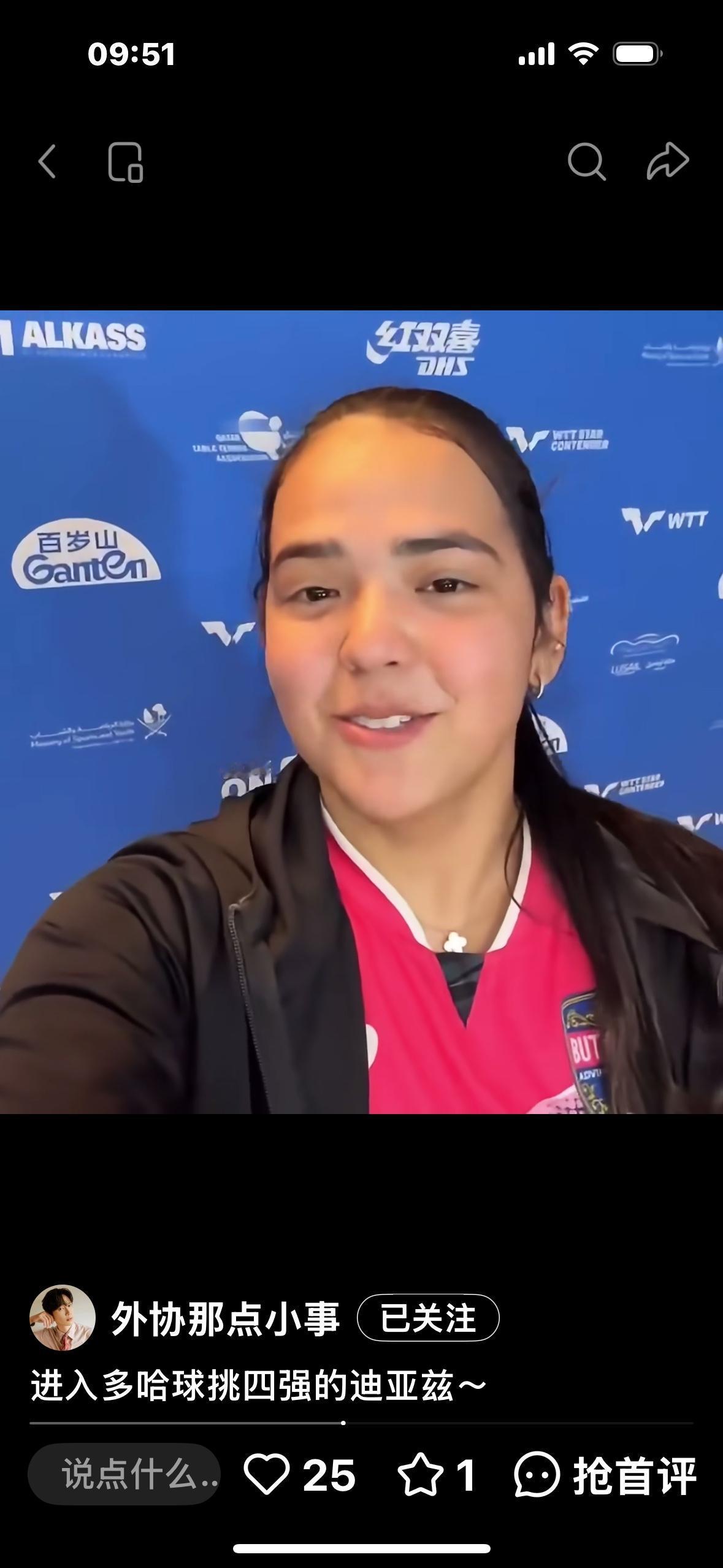 迪亚兹0:3佐藤瞳止步半决赛——也是不会打削球打法啊! 8:11,5:11,5:11 1月18日WTT多哈球星挑战赛 女单半决赛 迪亚兹0:3佐藤瞳, 看来迪亚兹也打不好佐藤瞳, 这样的削球选手! 另一组半决赛, 朱雨玲VS大藤沙月, 看来决赛是朱雨玲VS佐藤瞳, 朱雨玲夺冠的话, 世界排名将上升到第四, 国乒会不会招安朱雨玲?