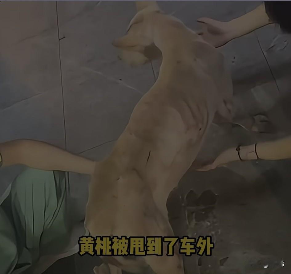 太可怜了!这是一个悲伤的故事,也是一只狗狗悲惨的一生,一只叫黄桃的狗狗因为生病被不负责任的主人遗弃了,病痛的折磨加上被遗弃的痛苦,令它顿时对这个世界失去信心,于是就准备投河自尽,但幸运的是这凄惨的一幕被一位善良的爱心小姐姐看到,把它带去了宠物医院治疗,顽强的黄桃居然奇迹般的战胜了多重病魔,奇迹般的好了起来。 更幸运的是,有一位远方的阿姨也决定收养它,小姐姐便给黄桃联系了托运公司就黄桃托运过去,正当黄桃准备迎接真正幸福生活的那一刻,不负责任的托运公司原本是承诺单独托运的,可他们居然把黄桃放在后备箱,为了不让它闷死,居然开着后备箱,导致在疾驰的路上,黄桃不幸被甩出,由于狗绳依旧绑在车上,黄桃就这样一路被拖行,活活的被拖断气了,它的身上到处都是伤口,有些骨头都被磨平了。实在是太惨了!它该有多疼啊!一条鲜活的生命就这样走了!虽然托运公司做了赔付和道歉,可再也不能挽回黄桃鲜活的生命,它原本可以拥有美好的新生活,却因为托运公司的不负责而早早以如此悲惨的方式离开了这个世界!希望黄桃在汪星可以幸福快乐!