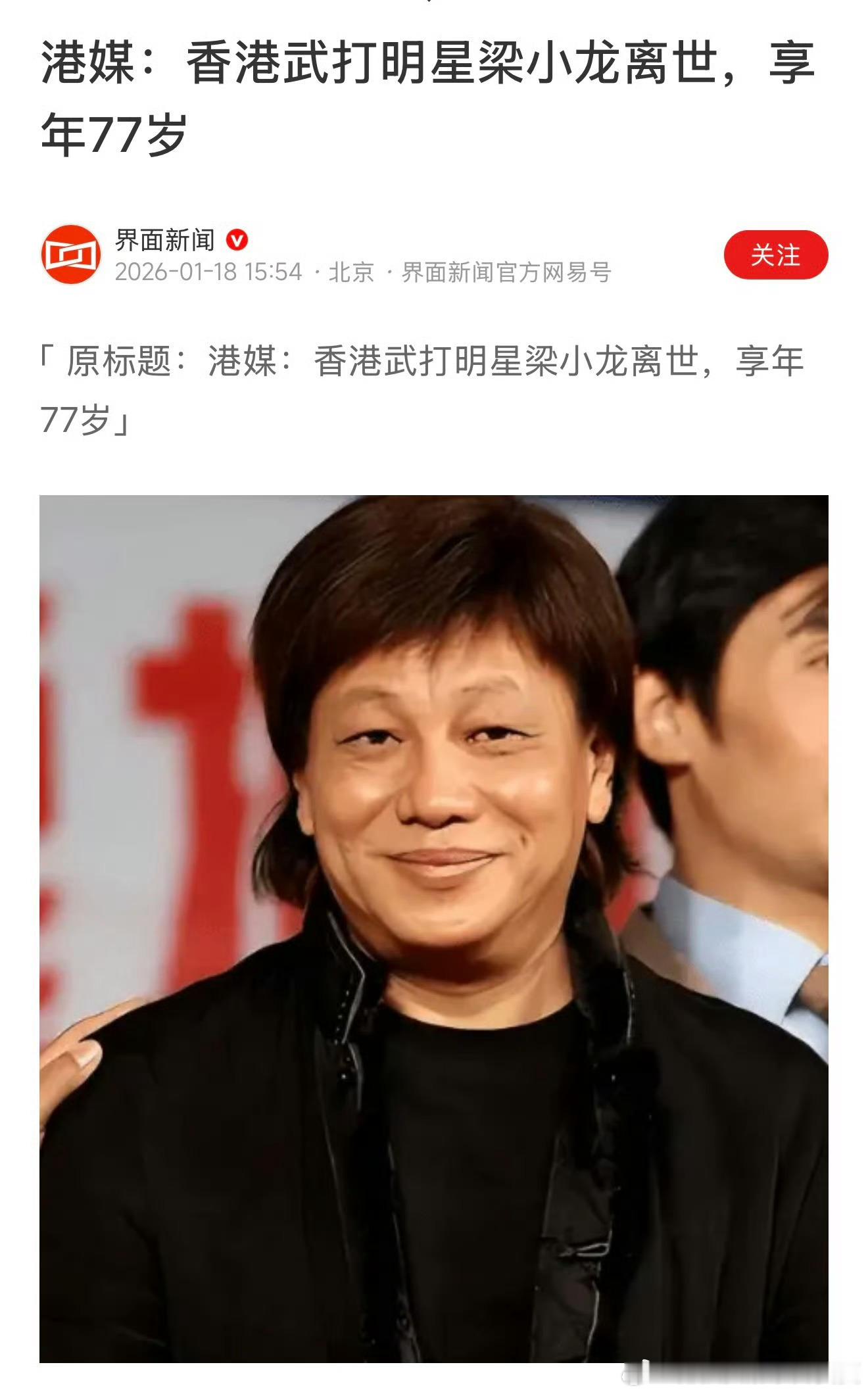 梁小龙去世据港媒报道,著名功夫影星梁小龙于1月14日不幸逝世,享年77岁。消息