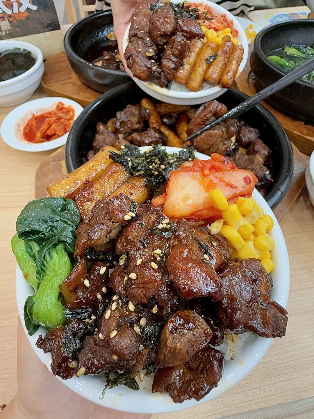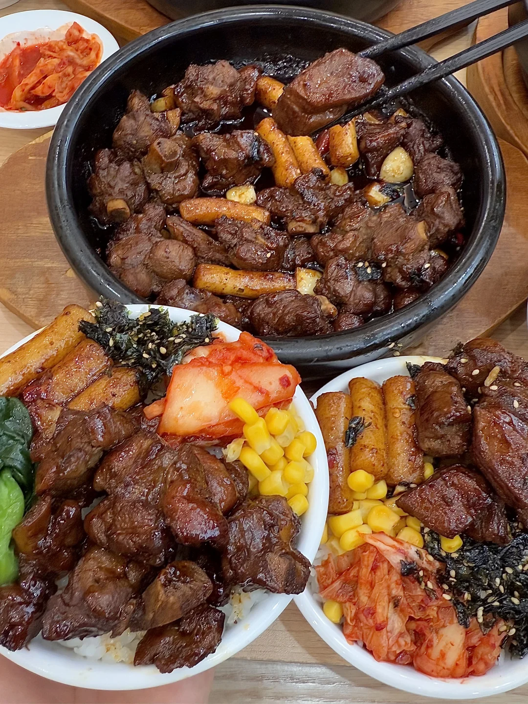 里面的年糕裹满甜辣酱汁,糯叽叽弹弹的很好吃!拌饭吃巨巨巨下饭直接吃了两碗米饭!