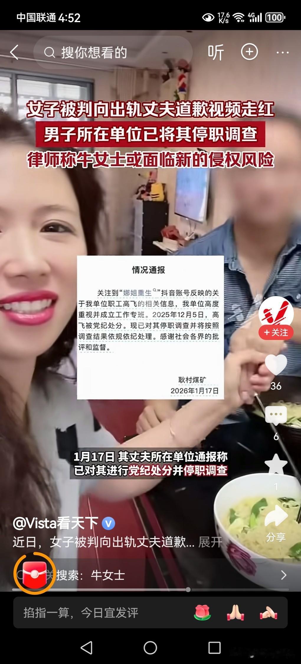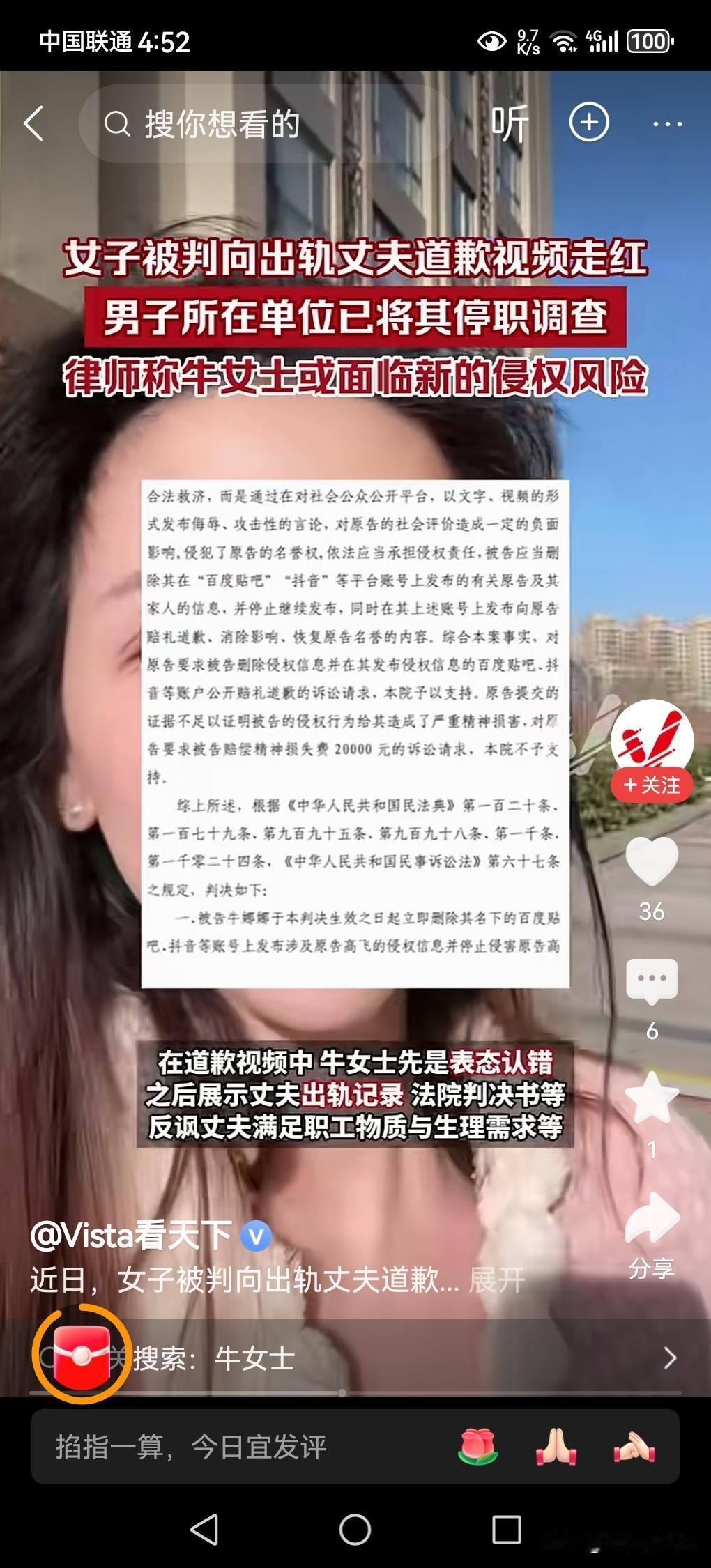 妻子向出轨丈夫道歉是维权?还是侵权? 妻子向丈夫道歉,说明妻子在处理某些问题的时候,存在有过激的地方,或者有错误的地方,因此妻子向丈夫道歉,是一种尊重客观事理,反省自己的有过错的言语和行为,知错就改的一种具体的体现,是值得提倡的,是值得弘扬的。 据媒体报道,河南省三门峡市一女子小牛,从1月12日起连续5天时间,在社交平台发布向出轨丈夫“道歉”的视频,引发互联网公众广泛关注。 小牛称,因她的丈夫与一名已婚女同事,持续出轨5年的婚外情,在社交平台上曝光了他两人的姓名、工作单位,以及消费证据等等个人隐私信息,遭起诉侵犯个人名誉权,法院判决妻子小牛,进行公开道歉。 但是,小牛在社交平台上连续发布5天的道歉视频,说了很多不应该说的,暴露了许许多多不应该暴露的事实,与法庭判决公开道歉,背道而驰,更进一步的侵犯了丈夫以及丈夫的同事的个人隐私权和名誉权,是一种违法犯罪的行为。 因此,小牛向自己丈夫的公开道歉,不是维权,是一种严重的侵犯行为,应该受到法律的惩罚。 通过此案,回归日常生活中,妻子向丈夫道歉,或者丈夫向妻子道歉,特别是公开道歉的时候,都不能夹带“私货”,存有“私心”,向对方或者公众,叙述对方的过错,揭露对方的与道歉无关系的隐私问题。 在道歉的时候,千万不能借题发挥,夹带“私货”,以借道歉之名,揭露对方的隐私信息和其它的错误行为,以及短处与不足,甚至是对方进行语言攻击。 这就脱离了道歉的本质,偏离了道歉的轨道,是一种变相的打击对方,报复对方的行为。 从表面来看,这种道歉,似是承认错误,请求原谅,其实是往对方的伤口上撒盐,是一种违反法律规定,是侵犯他人权利的行为,必然会受到法律的惩罚。 以上是本人观点,如有不妥,请大家在留言区处,留下你宝贵的意见,并积极参与评论。特邀请大家一起探讨此问题。