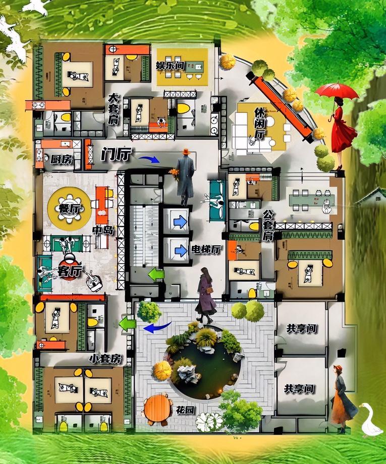 给大平层上史诗级一课,463㎡整出 三套房,带空中花园的房子! 它的辨识度十分高,虽说也是一条电梯大洄游,和你见过世面布局,真不是一个模子刻出来的。 16米过道,开道门,动线好有磁性,好像是布局上灵光一现,能住三家人,相比自建房三兄弟,更有性价比! 56㎡横厅能共享,84㎡大花园能共享,一里一外,两个环境,院外好像是魏晋风华,屋子里如竹林七贤,很有趣公区! 公摊面积很吃亏,不能吃火锅,没留贮物间,为面子保留电梯厅,为行走留下八米过道,都不好意思质疑,这双梯独家,浪费不心疼! 55㎡休闲区不信邪,布局不老套,动线有三门,窗景新视角比客厅强六分,右中岛,左手工,有颜值有演技有造型,功能多样化,动线自由行,格局很传神! 看上去,布局道貌岸然,动线上,不招摇撞骗,一个很偏门的休闲厅,能抢客厅的风头,叫做三套房,有理有据! 不霸占大平层,凭严谨的生活精神,仔细观察户型,看接地气的布局,就知道了。 真乃神仙大平层!