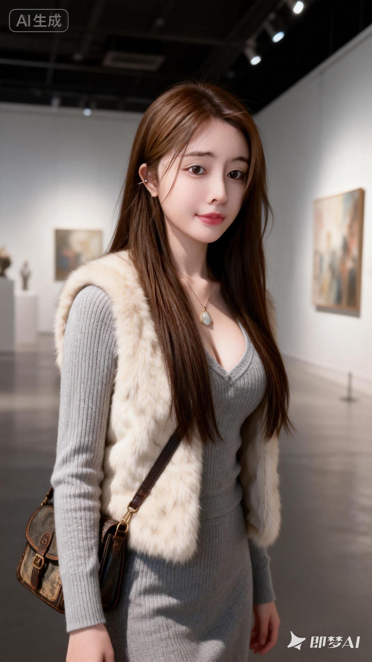 聚焦一位拥有棕色长发的东亚女性,发丝在柔光下呈现自然飘逸的动态感;妆容打造清透伪