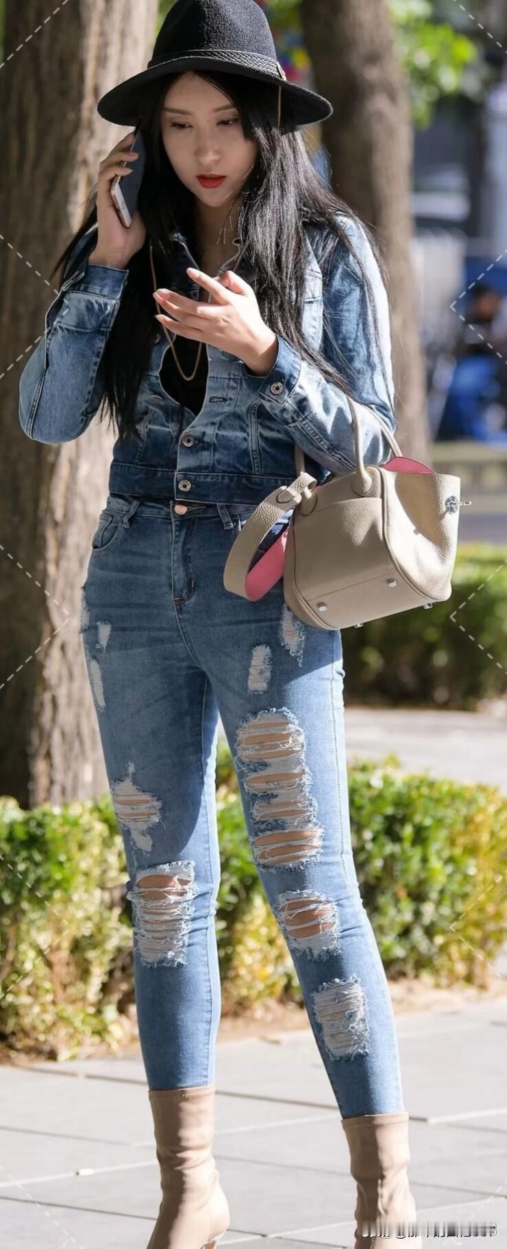 都市时尚女孩总能把牛仔风穿搭玩出花样。想象一下,她身着牛仔套装,利落又不失俏皮。上半身是短款牛仔外套,露出纤细的腰肢;下半身搭配一条高腰阔腿牛仔裤,瞬间拉长腿部线条。 头上那顶黑色宽檐帽更是点睛之笔,不仅能遮挡阳光,还增添了几分神秘气质。手里提着复古手提包,皮质的纹理和精致的锁扣,尽显岁月沉淀的韵味。 她迈着自信的步伐走在街头,每一步都散发着魅力。路人的目光纷纷被吸引,她就是都市中一道亮丽的风景线,用穿搭诠释着自己的时尚态度。