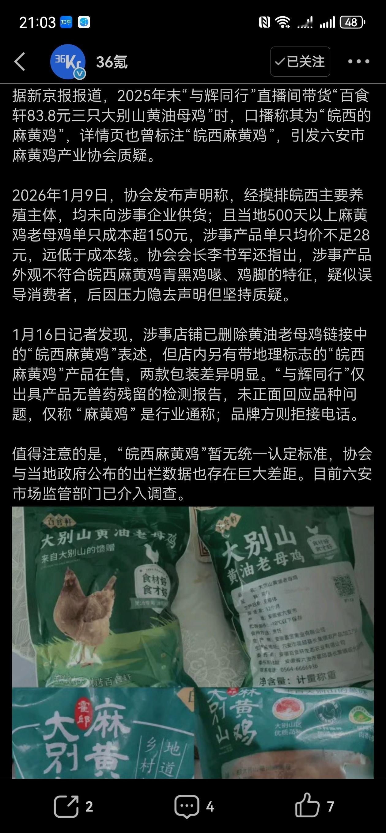 与辉同行带货产品卖价过低引质疑这个会不会构成虚假宣传呢?会有专业人士解读。但是正常的逻辑上,一只鸡才28块,能是正宗的吗?想想为什么那么便宜,为什么?为什么?与辉同行带货产品卖价过低引质疑
